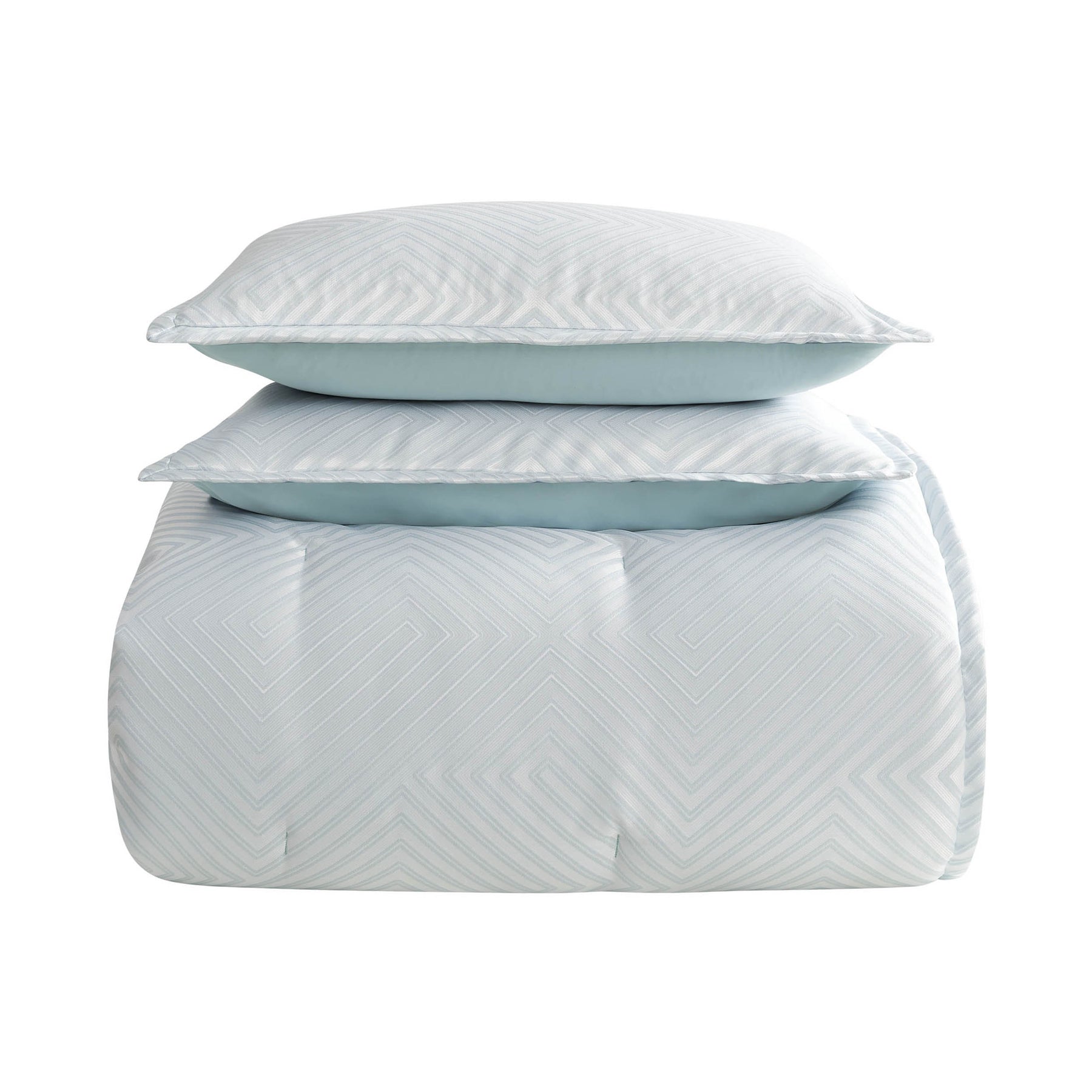 A perfect pairing of our most popular patterned comforter set with a coordinating coverlet set creates not only a valuable bundle, but also showcases the modern, fashion-forward trend of layered bedding.