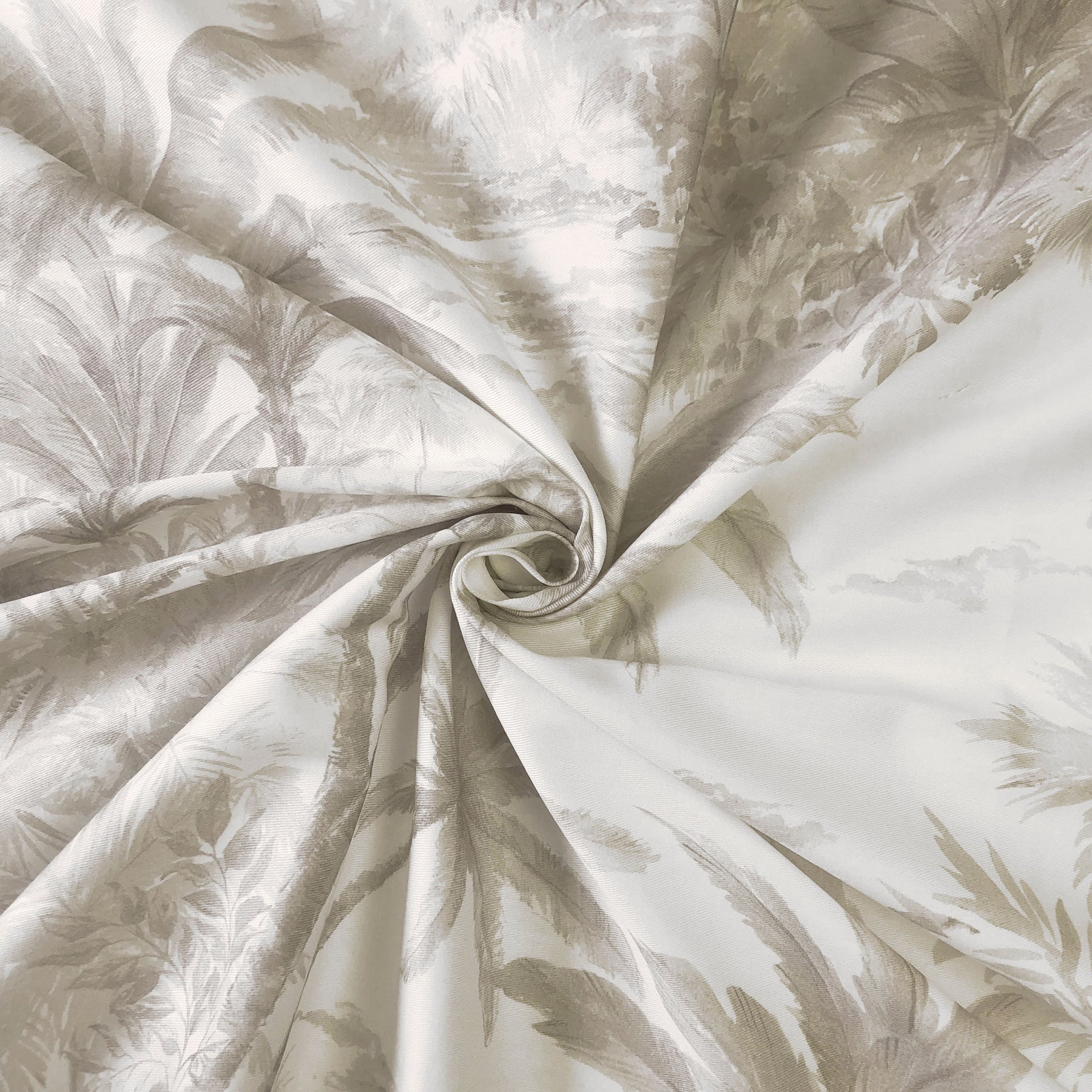Escape to your own private oasis with our Palmora bedding ensemble. Against a soft ivory twill fabric, lush palm fronds and vibrant tropical blooms come alive. Imagine sinking into the top of the bed, surrounded by this botanical paradise. The ensemble includes pillow shams, Euro shams adding a touch of European elegance, and three reversible cushions—a canvas for your creativity. Palmora isn’t just bedding; it’s an escape to paradise.