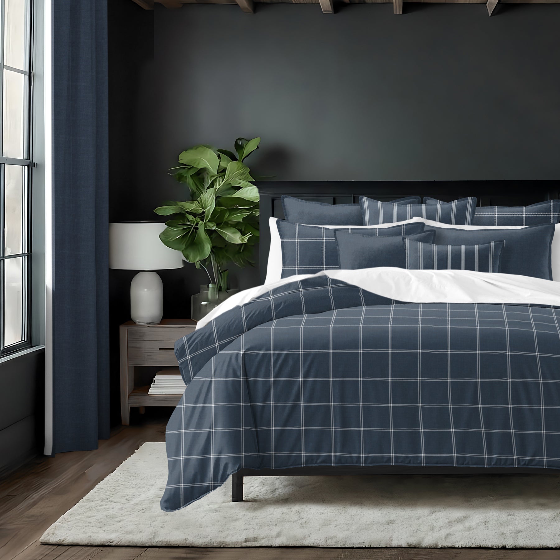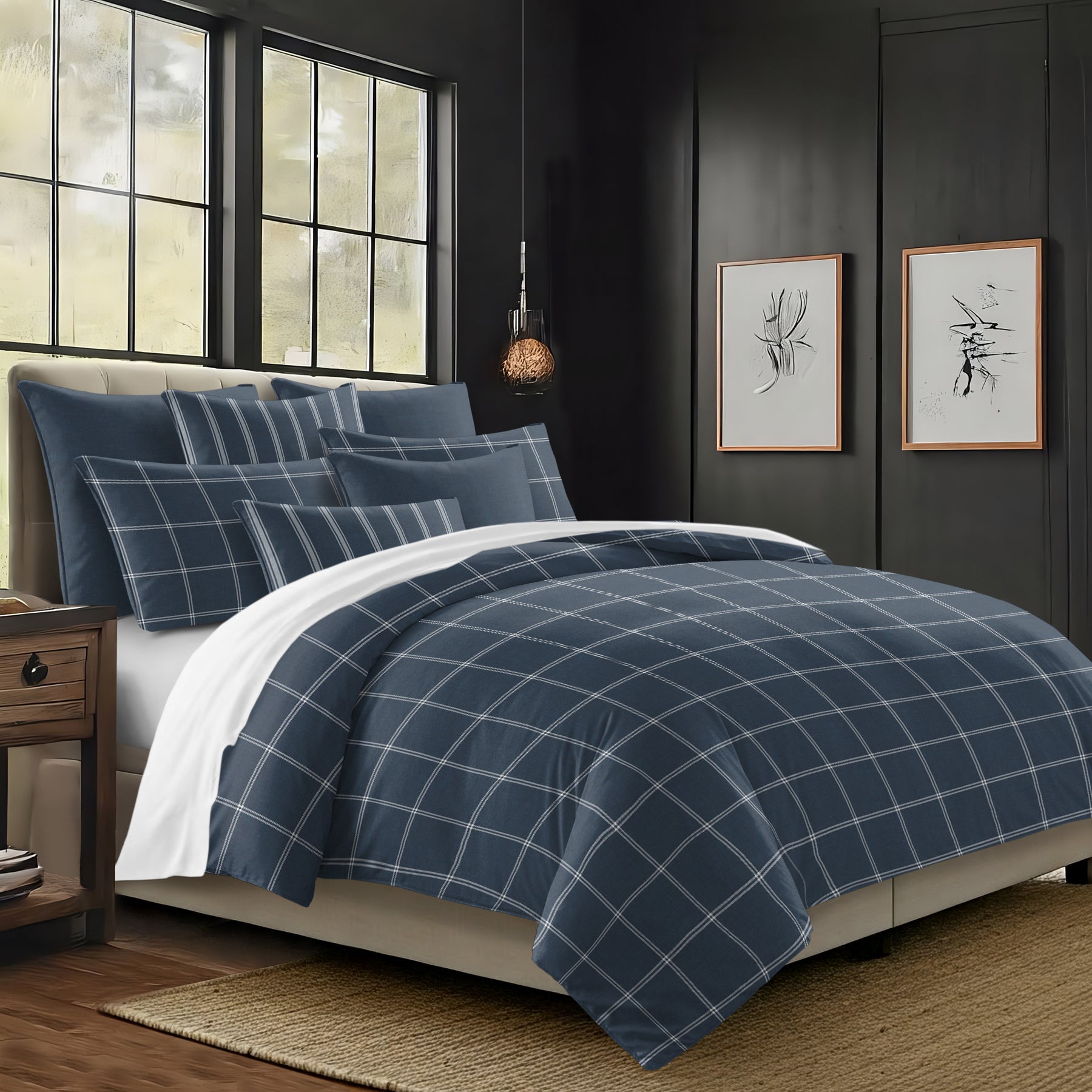 Shay Window Pane Dark Denim 8 Piece Coverlet Set