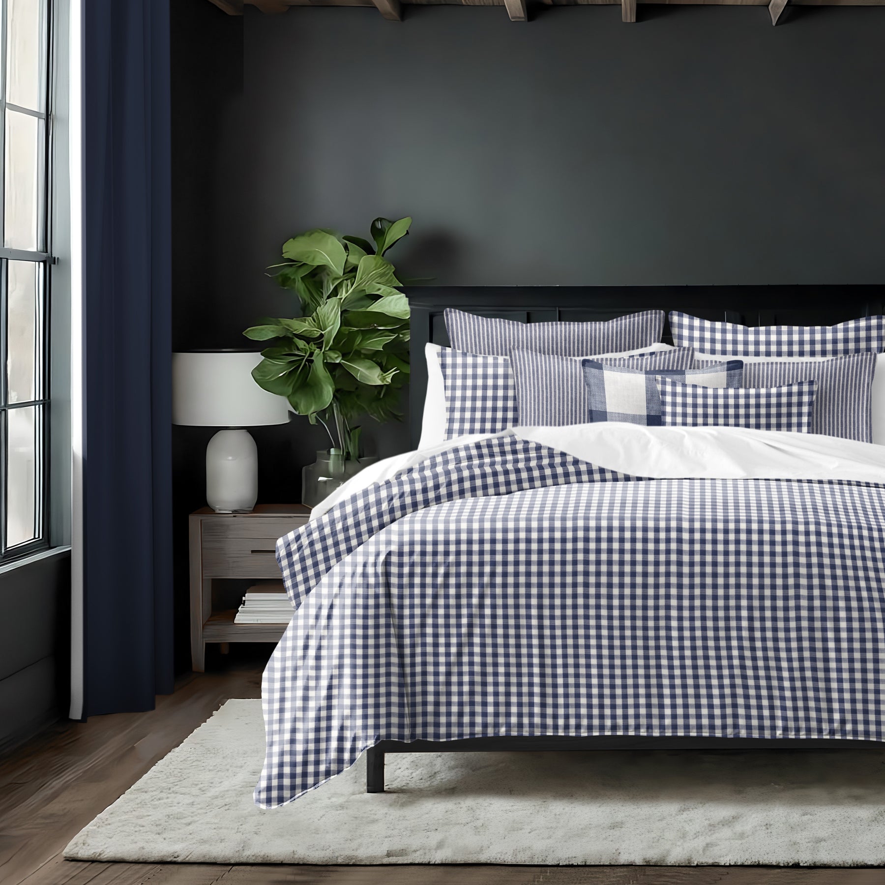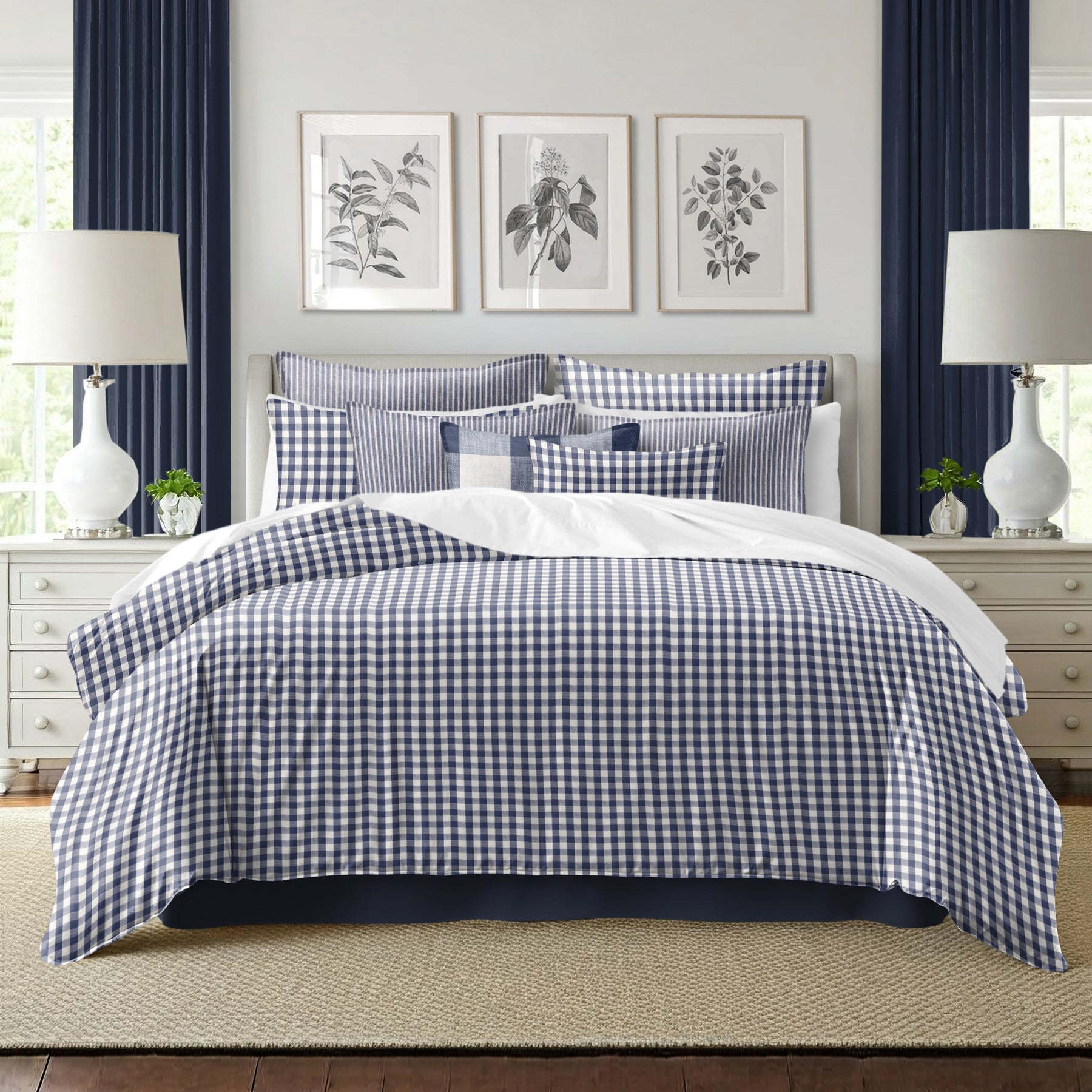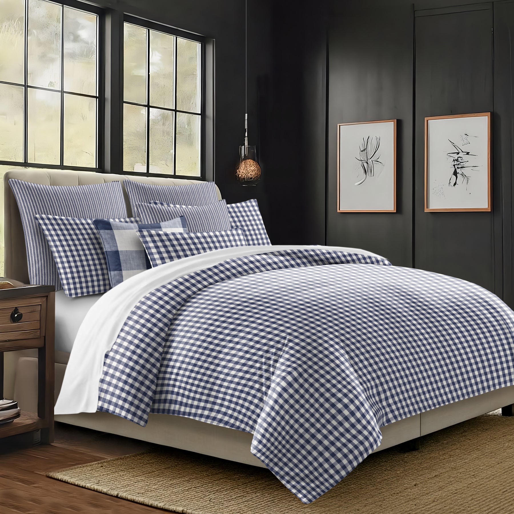 Walker Check Reverse to Stripe Indigo/Ivory 8 Piece Coverlet Set