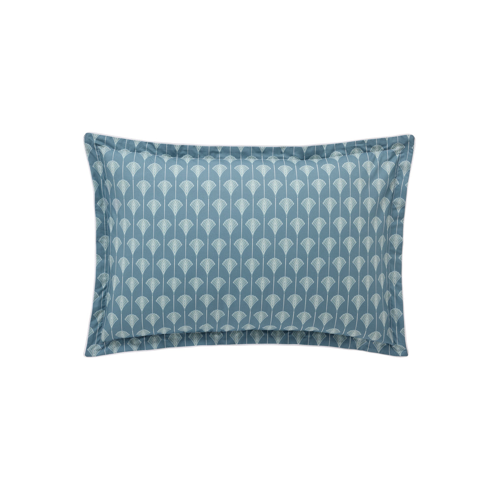Aristo blends the elegance of very chic 1930s design with a youthful spirit. Aristo boldly reinterprets Art Deco style: a beaded stripe, graphic palm motifs in petrol blue, and an ivory inset trim finishing detail that highlights a bedding set as chic as it is contemporary. Aristo fitted sheets are in the pearl stripe print.