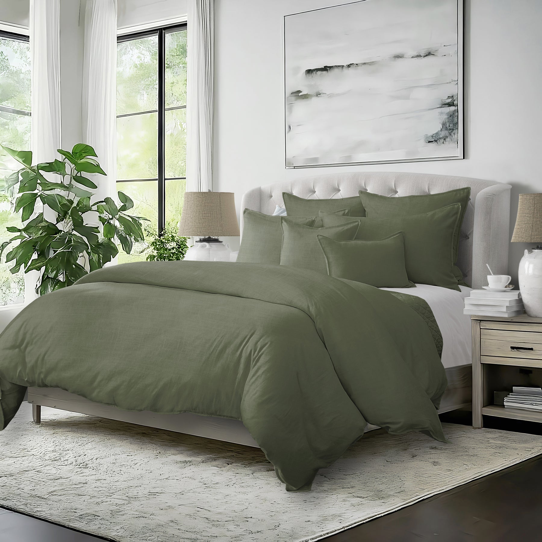The Elsie 8-piece bedding ensemble offers a luxurious blend of style and comfort, featuring fabric that mimics the sophisticated appearance of linen but with a significantly softened hand feel. This ensemble includes everything you need for a beautifully coordinated bedroom, combining the elegant look of linen with the added benefit of a more gentle, inviting texture. Perfect for those who appreciate refined aesthetics and cozy comfort, the Elsie bedding set transforms your bedroom into a serene retreat with its meticulously designed pieces and high-quality materials.
