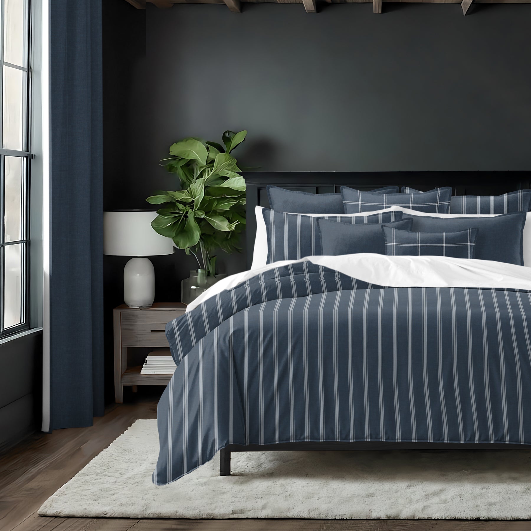 Shay Broad Tic Stripe Dark Denim 8 Piece Comforter Set