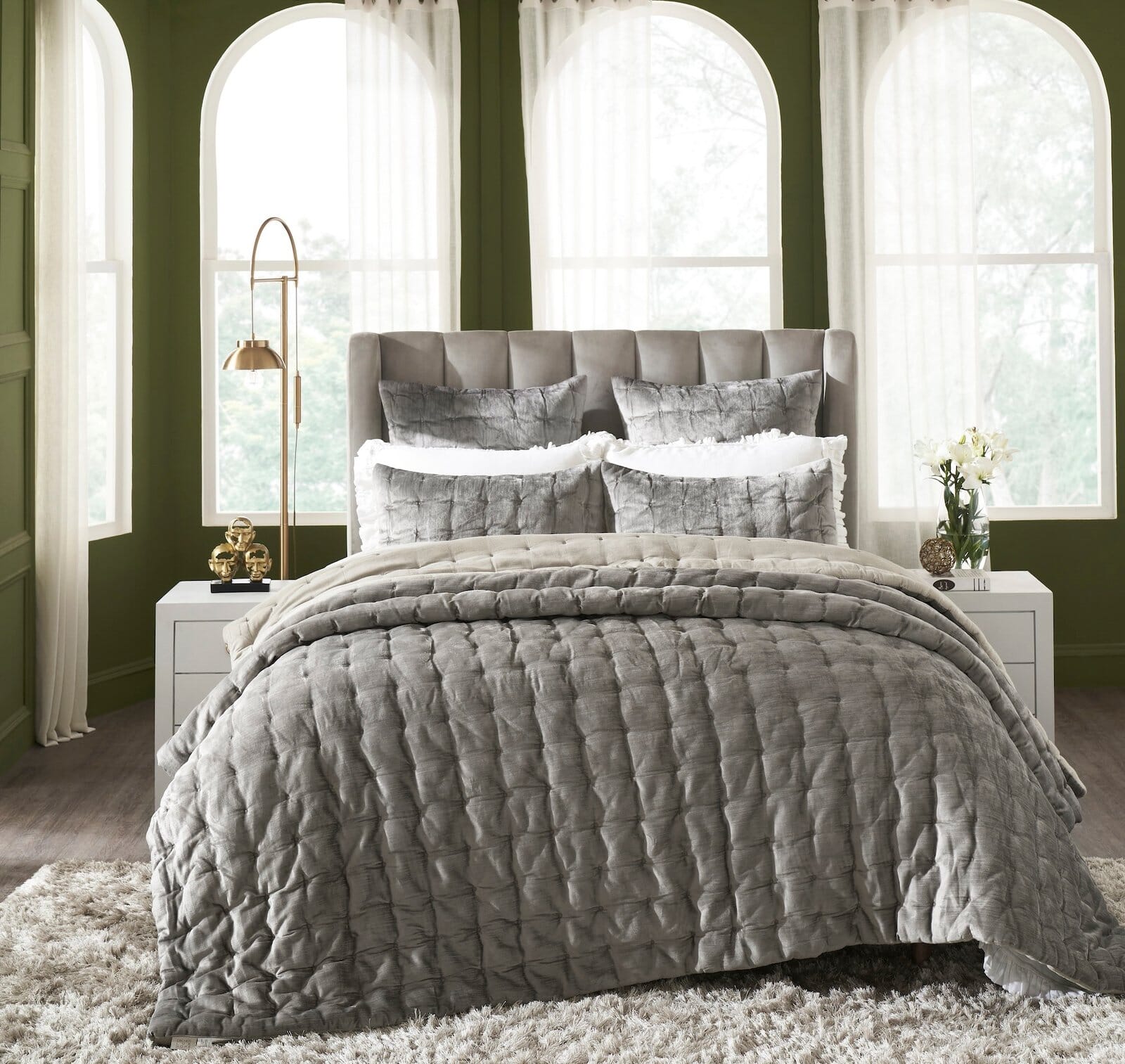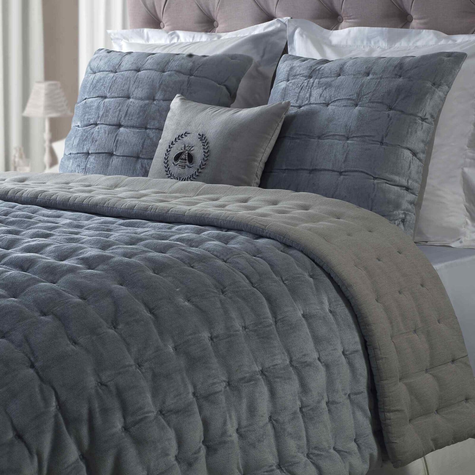 Immerse yourself in pure luxury with orchids lux home's sumptuous bailey quilts and Shams. Made of slub Cotton viscose that has been velvet tuck-embroidered in a subtly spotted pattern, the tufted bedding adds a layer of plush texture to your bedroom. Sham and quilt reverse to smooth Cotton that has been vintage-washed for softness.