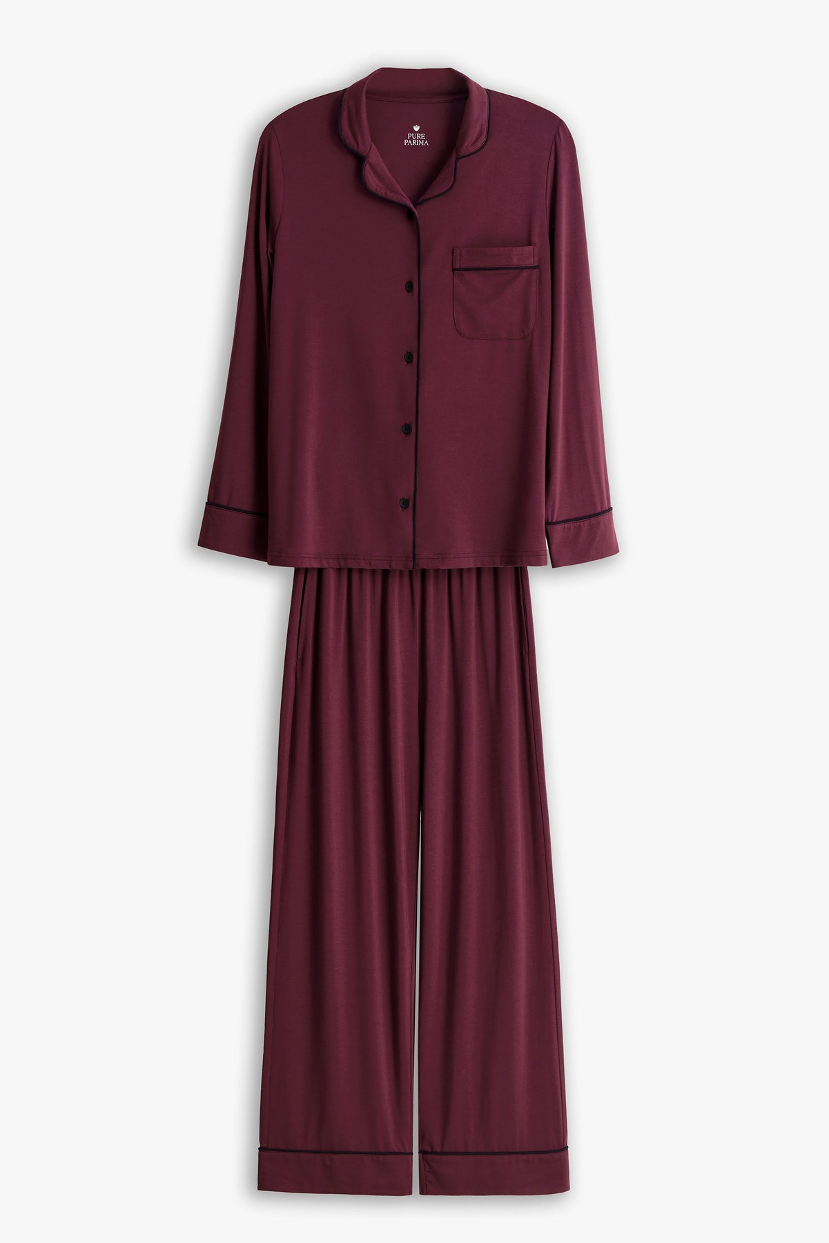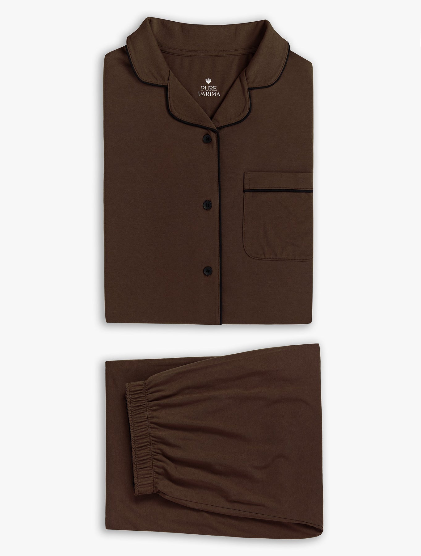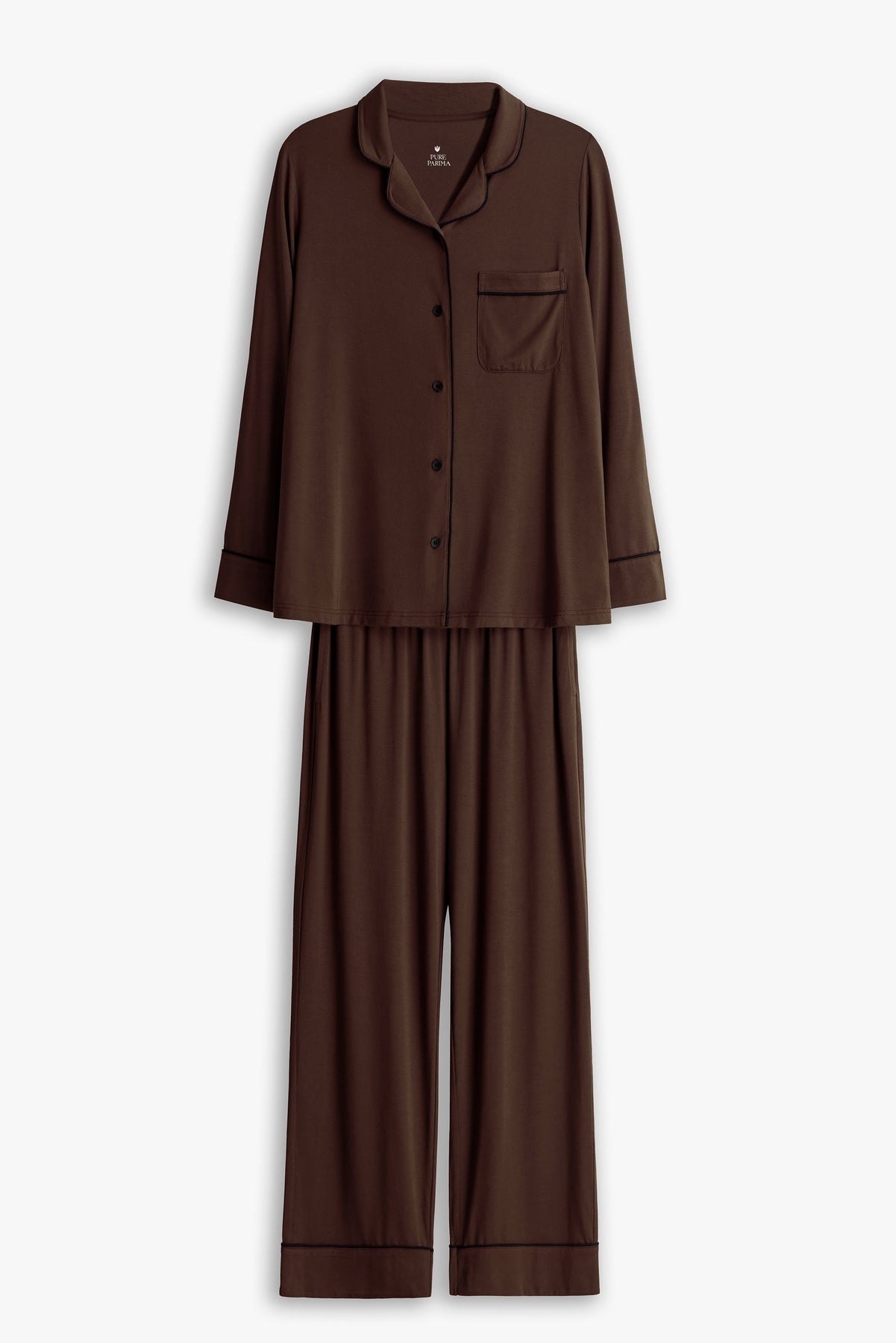 Slip into effortless comfort with our Soft-Knit Long Sleeve Pajama Set, crafted from a buttery-soft blend of modal and spandex. Designed to drape beautifully over the body, this set offers just the right amount of stretch for ease of movement and all-night comfort. Lightweight and breathable, it’s the perfect balance of style, softness, and sleepwear you’ll want to live in.