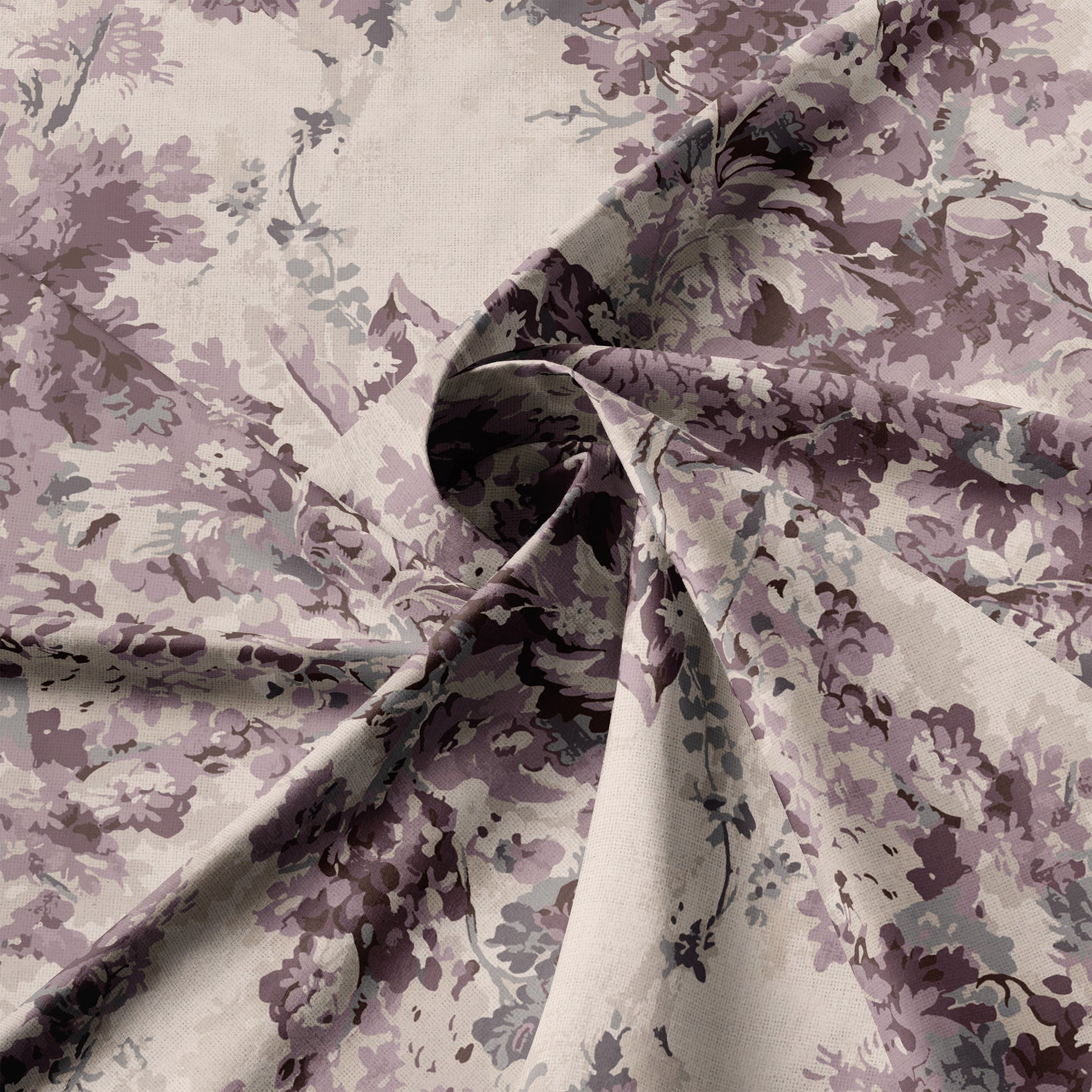 This captivating motif features a painted forest rendered in delicate shades of lavender and wisteria, set against a soft neutral taupe backdrop.