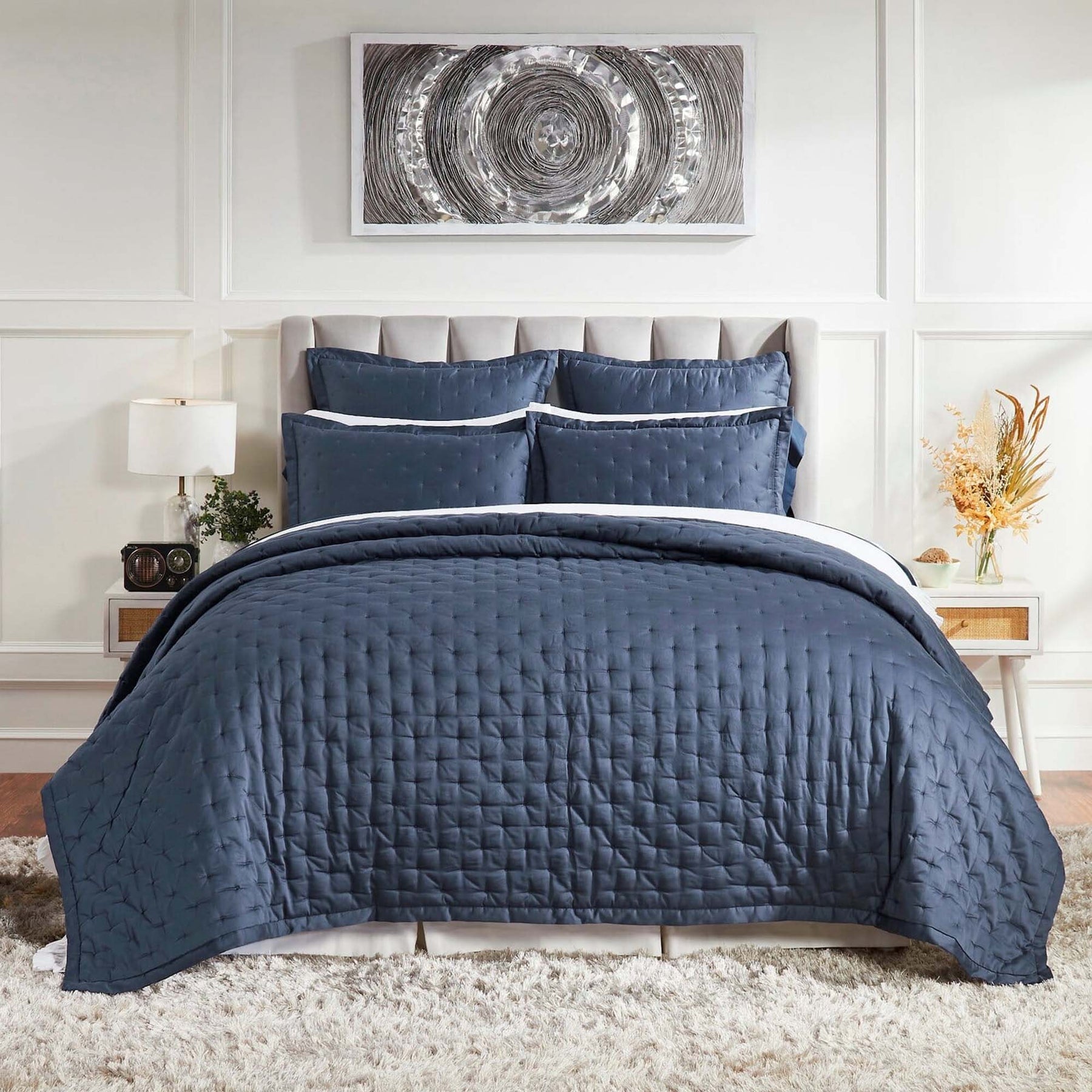 A layer for all seasons, this lightweight Cotton Sateen reversible quilt with a beautifully smooth textured hand feel. The overall style is understated yet elegant, for easy versatility. And thanks to the Natural breathability of Cotton, it's perfect during the summer months ? but also keeps you pleasantly warm when the temperature drops. Specially washed for a wonderfully relaxed feel, it just gets softer with time.