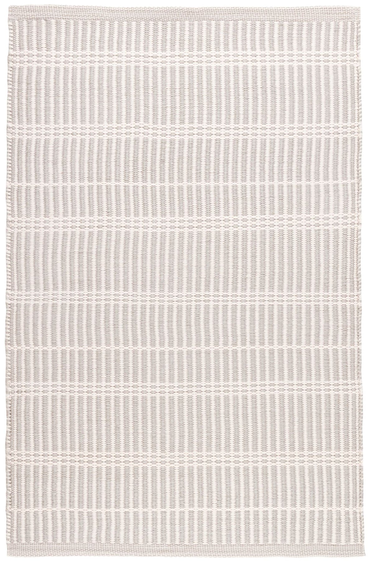 This bold, low profile, and tightly-woven rug is a stylish and sophisticated take on subtle patterning. Delicate, end-on-end mini stripes are intersected by intermittent bars of ivory overlay. Made of durable polypropylene and terrific for high-traffic areas, this washable, scrubbable, and bleachable indoor/outdoor rug will stand up to all that you dish out for years to come.