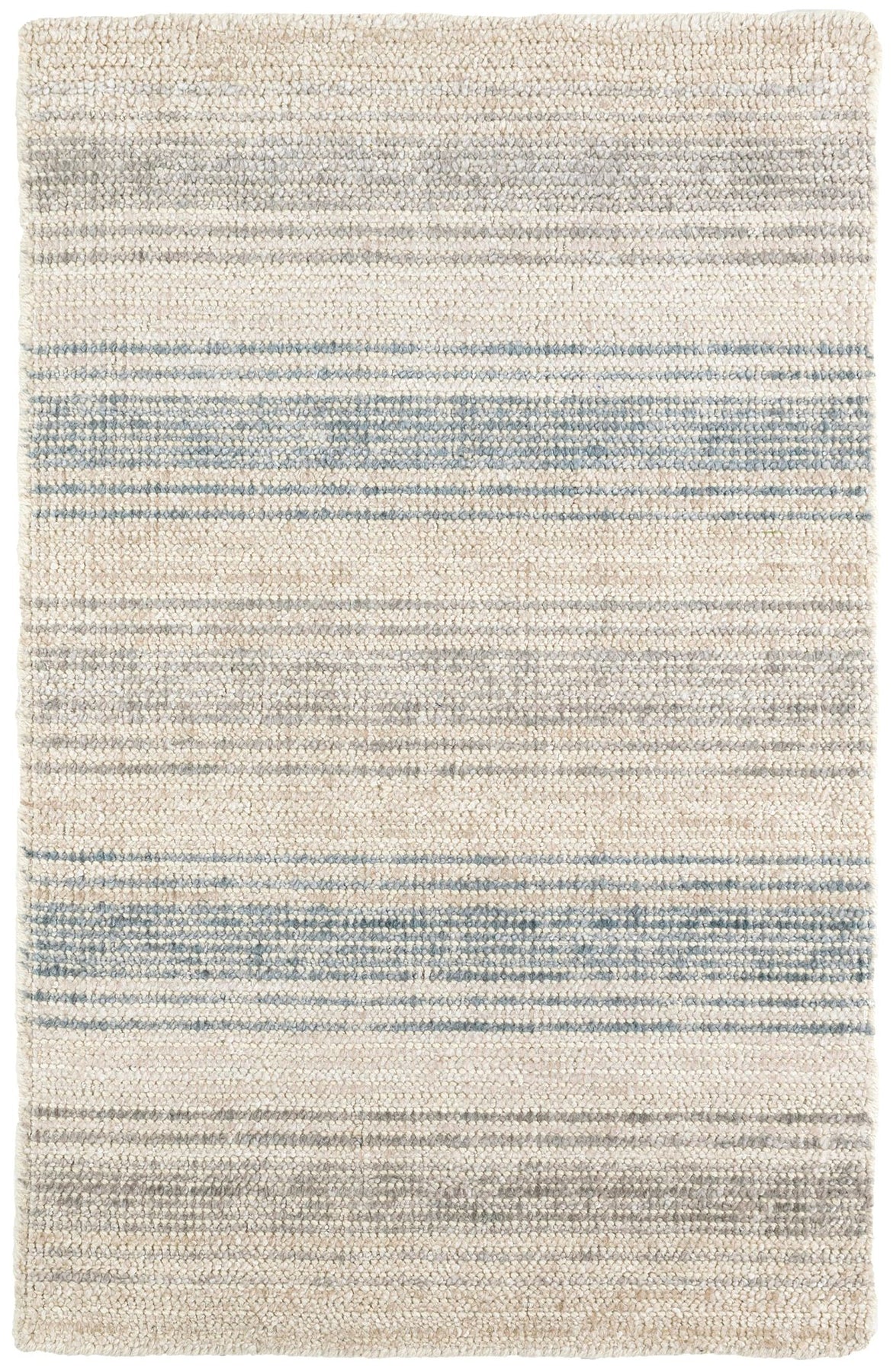 Hazy stripes in blue and brown float like moonbeams on a winter horizon, the natural ground deep with subtle sheen and luster, delicate and profound.