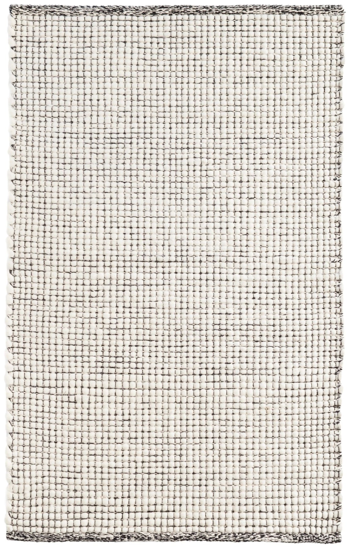 Mosaic cubes of white wool roving are structured into modern grids with a black twisted cotton overlay for magnificent movement and understated textural accent.