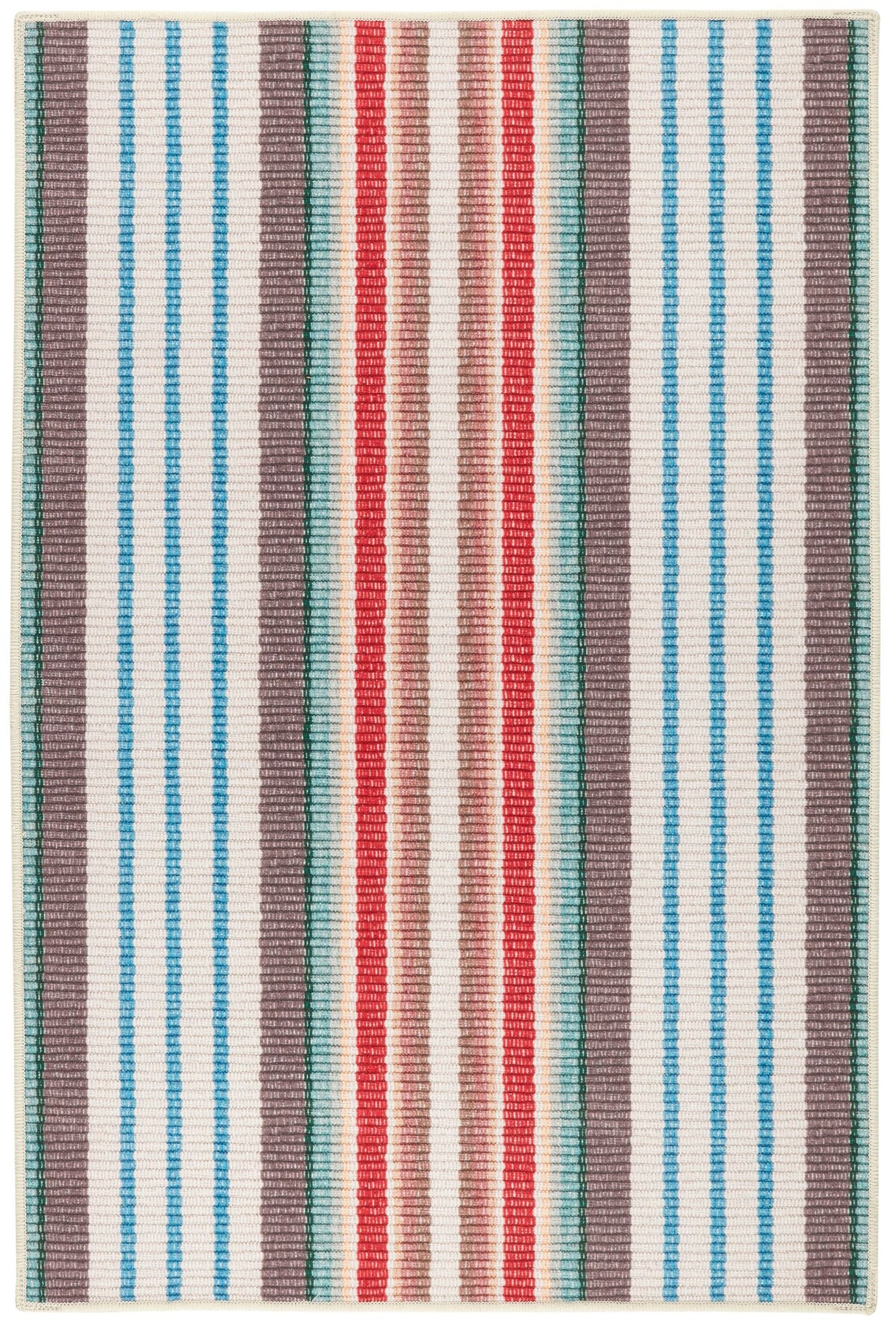 Part of our best-in-class collection of design-focused, machine-washable rugs. Even cowgirls get the blues (and red and browns and whites). With its bold repeating stripes and versatile colors, this superior quality, machine washable rug is at home on the range, or in any room you want to place it. Ideally suited for high-traffic areas like playrooms, kitchens, and entryways, it lies flat and remains soft underfoot with no shedding or fuzzing, even after multiple washes.