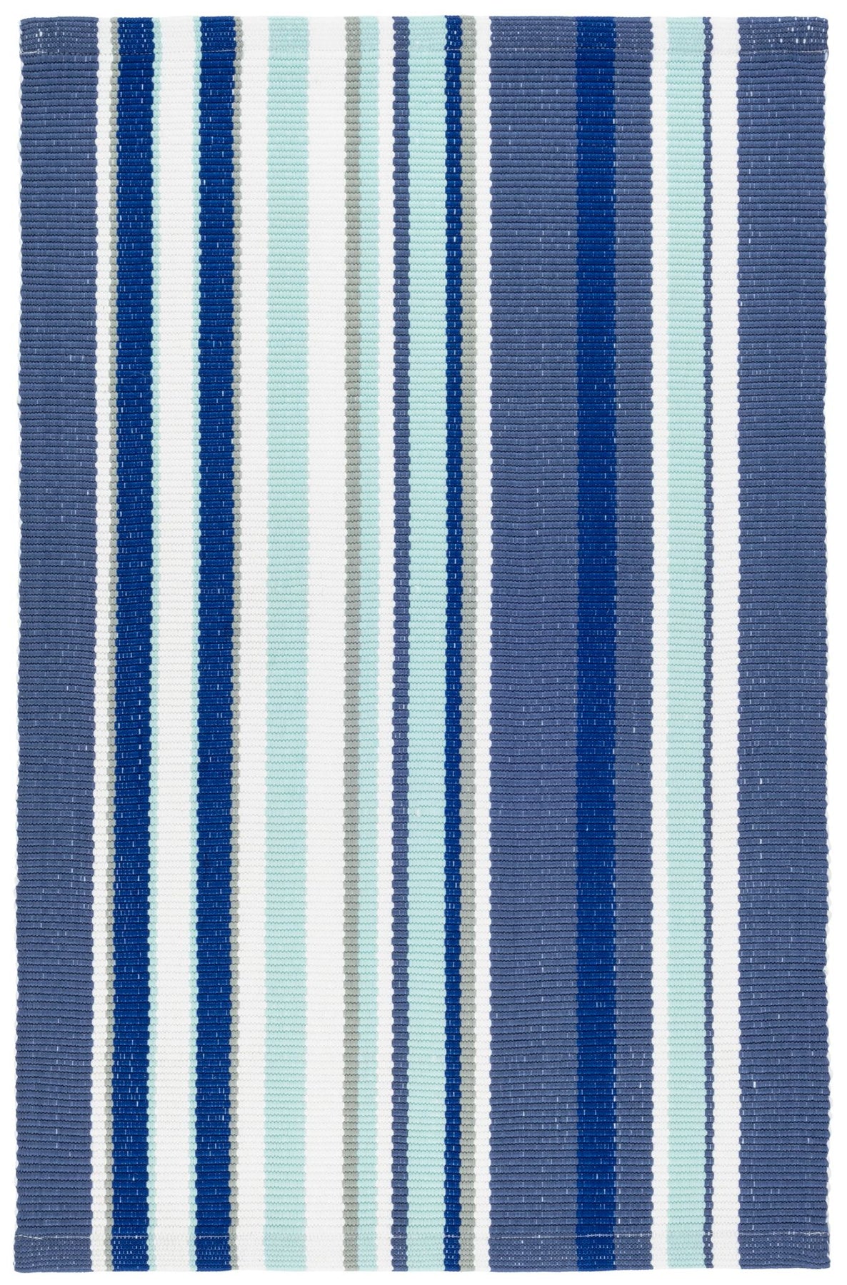 In this fresh favorite, pale marine shades are paired with indigo, navy, and grey stripes on a bright white base. Made of polypropylene and terrific for high-traffic areas, this washable, scrubbable, and bleachable indoor/outdoor rug will stand up to wear and tear for years to come.