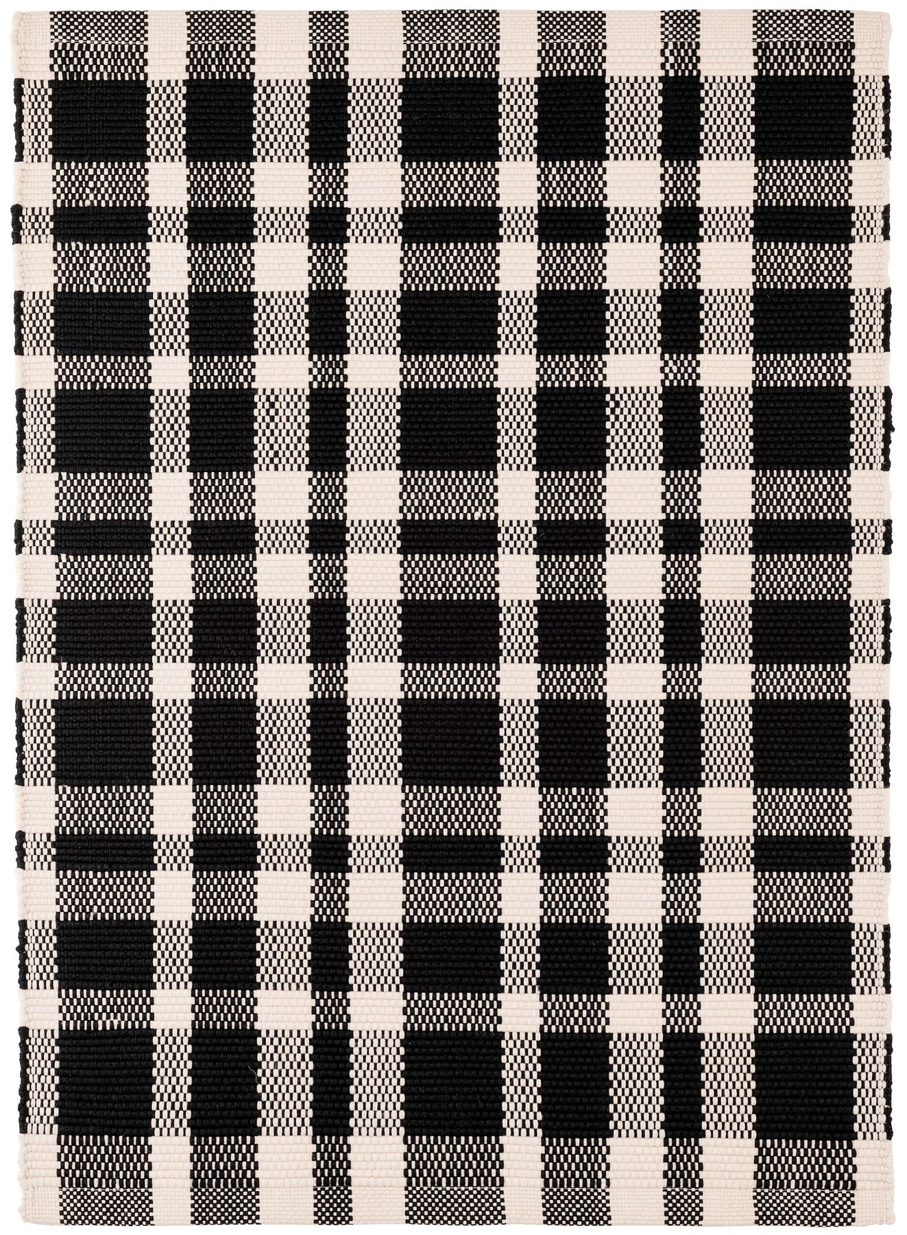 Add a touch of classic style to your high-traffic spaces with this lightweight, washable, and durable indoor/outdoor rug in a timeless yet modern black and ivory plaid.