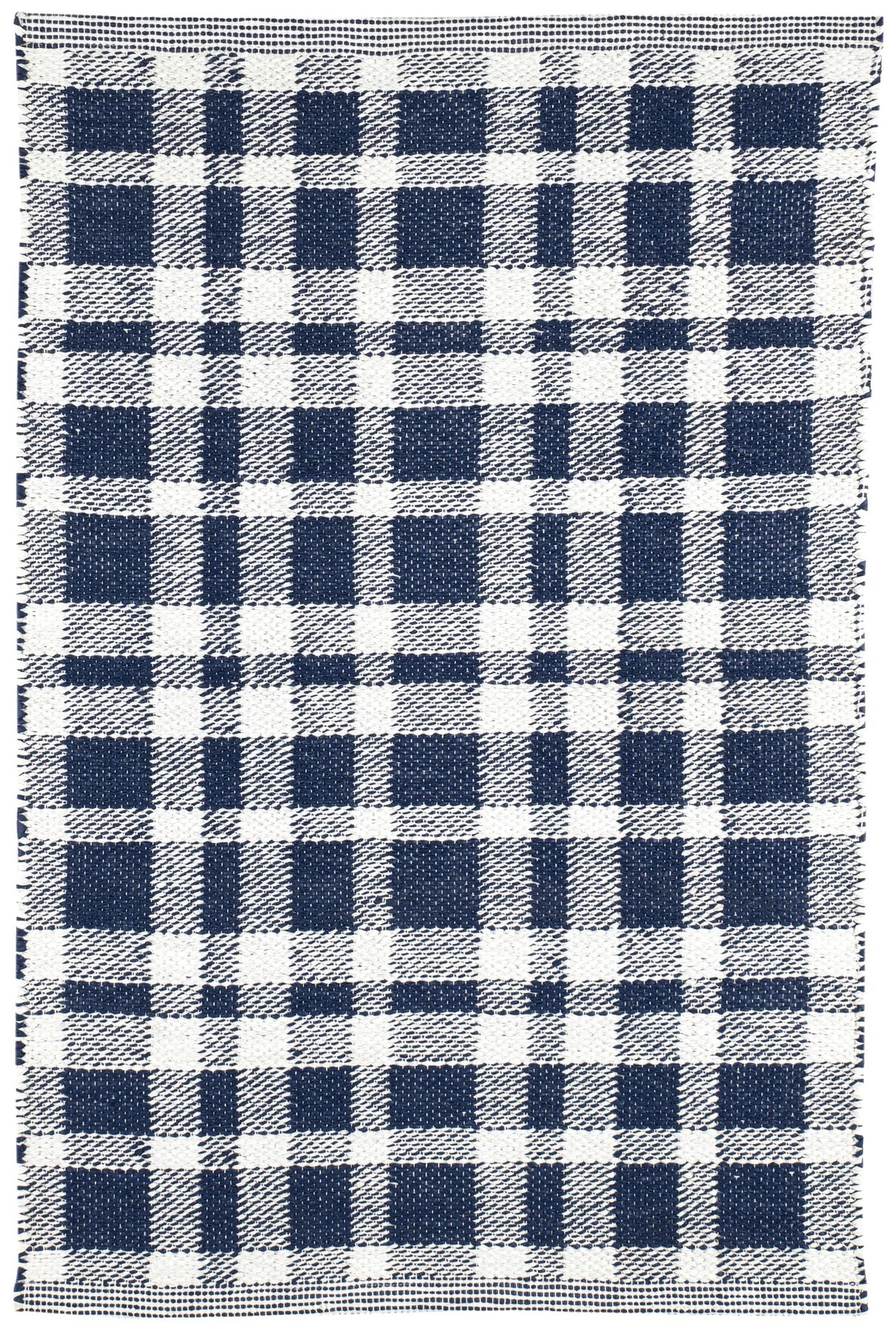 Tattersall Navy Handwoven Indoor/Outdoor Rug
