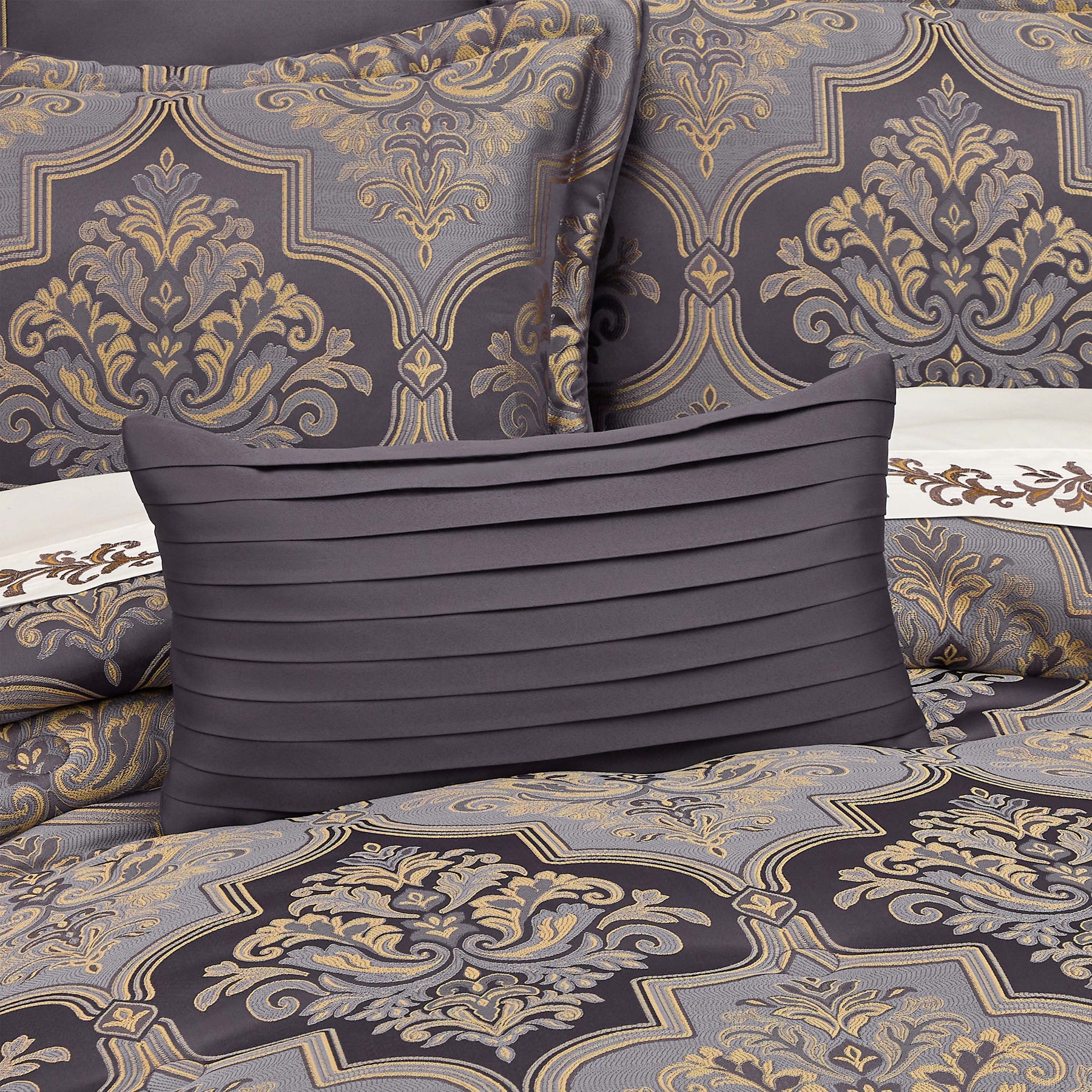 The manchester boudoir pillow adds a simple yet sophisticated element to the coordinate comforter. The pleated solid lavender fabric offers a tonal look with sleek surface interest. Pair this pillow with the manchester bedding set for an updated traditional look.