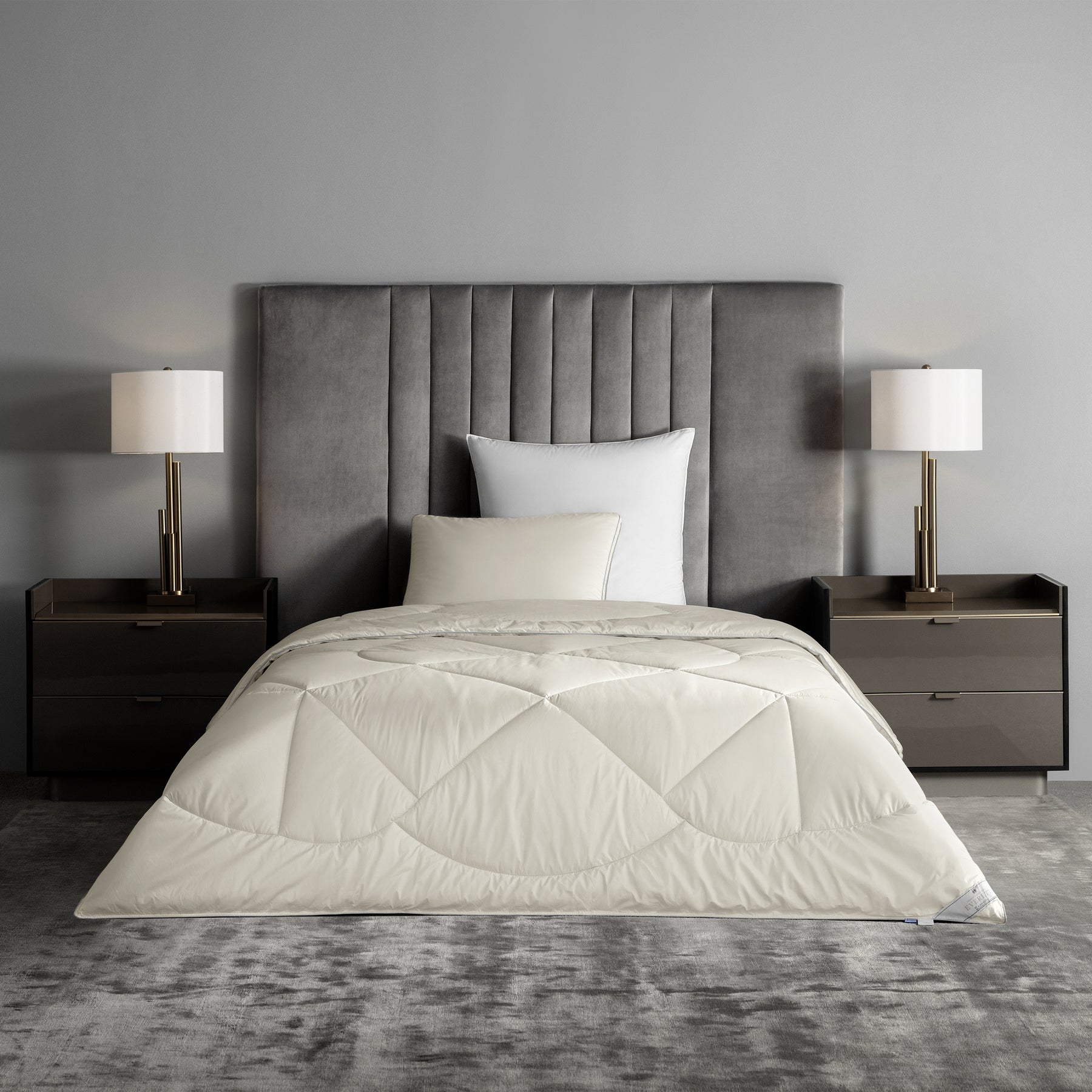 Alpacas live in the mountains in harsh conditions, so they have a very thick and long fleece (up to 20 cm in length), which keeps them perfectly warm. The valuable wool has a number of unique properties: it is silky, very durable and pleasant to the touch. Items made of alpaca down are moisture-absorbing and hypoallergenic. Everett is a very warm model that is perfect for cold winters. Everett’s cover is made of cotton batiste. Natural cotton is highly absorbent and breathable, and does not accumulate static electricity. The soft, pleasant to the touch material in a beautiful shade of creamy ecru is made of durable, high-density fabric (460 TC). The dense fabric of the cover significantly increases the service life of the product.