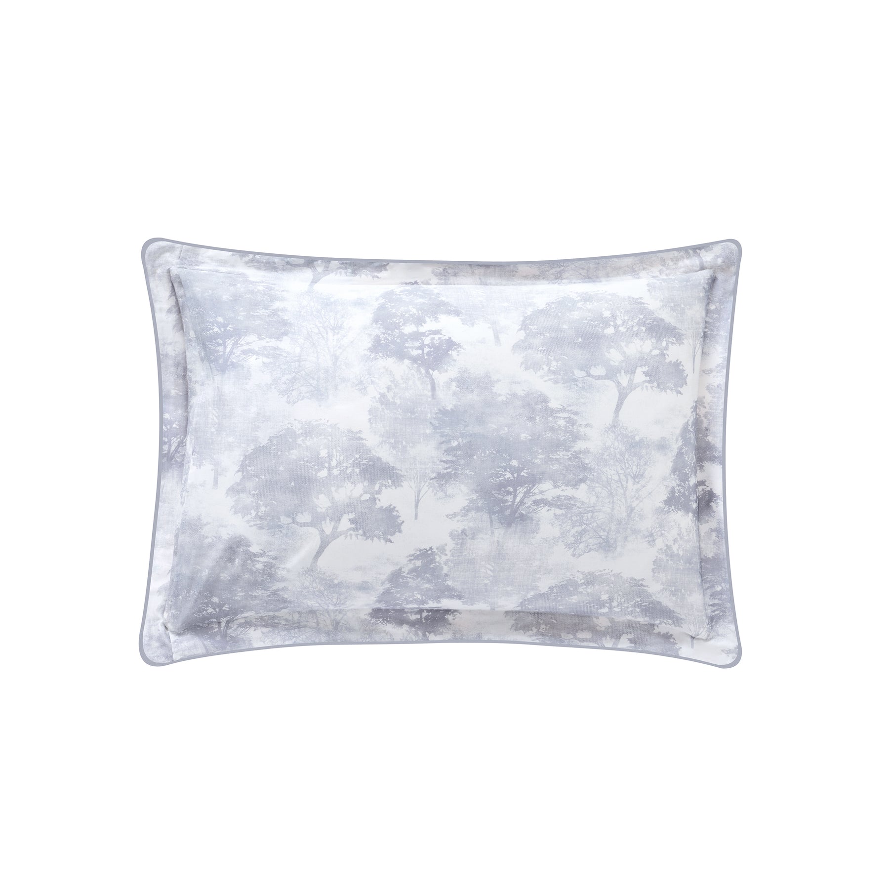 Silence …. Japanese Maple therapy … Shade of frost offer a gradient of blues with the virtues of calm and stability. A delicate sculptor of cold nights, frost shrouds the trees in a magical aura. His presence awakens a sense of sacred silence, where nature seems to hold its breath, frozen in a pause that is as beautiful as it is elusive. Silence shams have the silhouetted Maple trees print on both sides and embellished with a grey colored fine piping detail. Sateen construction, 300 TC, made of 100% long-staple combed Organic cotton. Made in France.