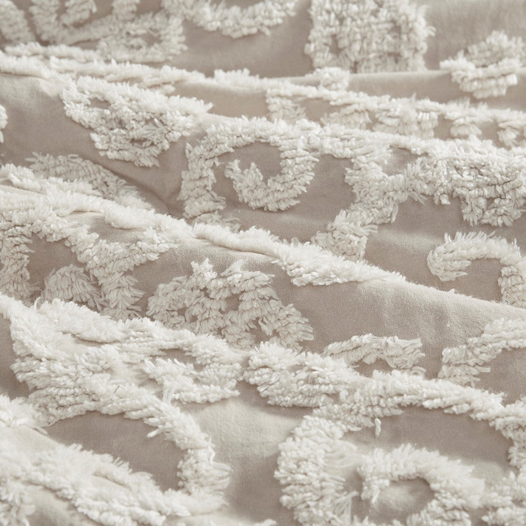 The Cayman is the perfect addition to make your bedroom classically comfortable. Delicately tufted medallions are beautifully showcased throughout this comforter in a gorgeous taupe hue, giving your bedroom a soft homey feel. Matching sham(s) showcase the same beautiful technique to provide a coordinated and charming finish. Made from 100% cotton, this oversized and overfilled comforter will provide you with the utmost comfort and give you bedroom an elegant update.
