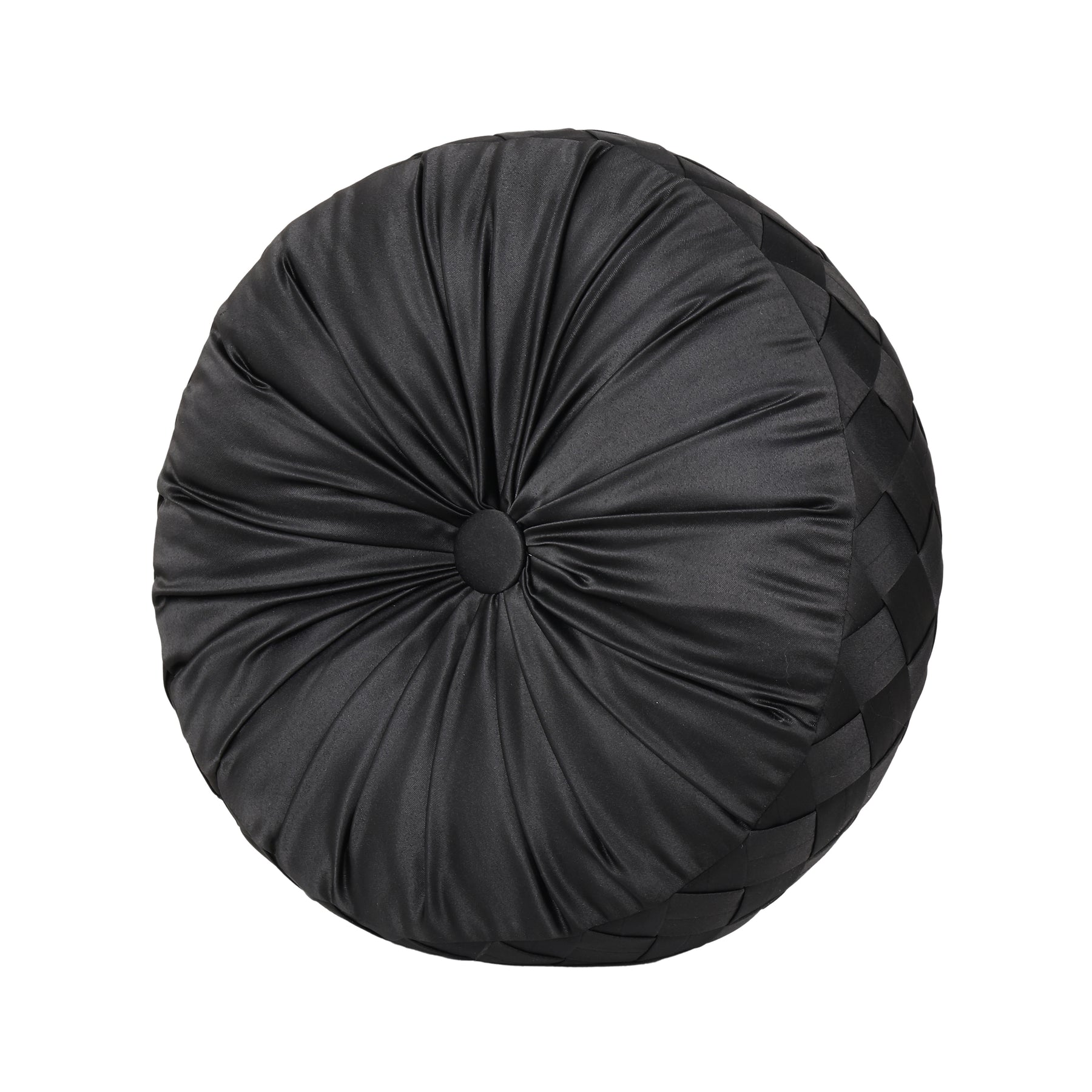 The Harriman tufted round pillow uses a beautiful plush black satin fabric to create a one of kind accent to this bedding ensemble. This 15" unique round accent pillow is sewn by hand and is finished with a fabric covered button on both sides. Pair it with the Harriman bedding set by five queens court for a complete look.