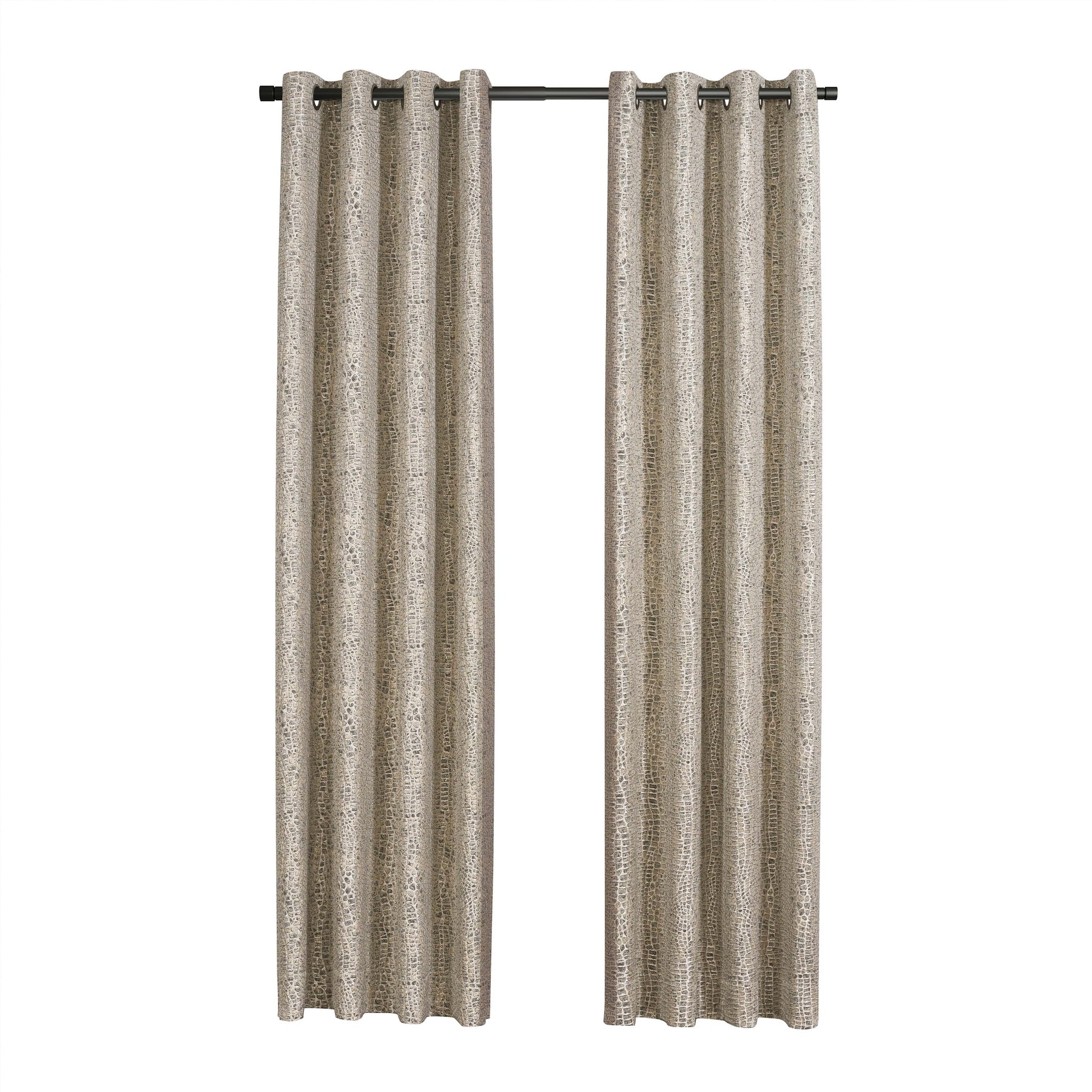 The habitat window panels feature an embossed textured fabric that mimics the look of crocodile skin. Each panel is fully lined to provide darkness for comfortable sleep and relaxation. The finishing touch is the grommet ring top construction, which allows for easy setup and coordinates beautifully with the habitat bedding collection.