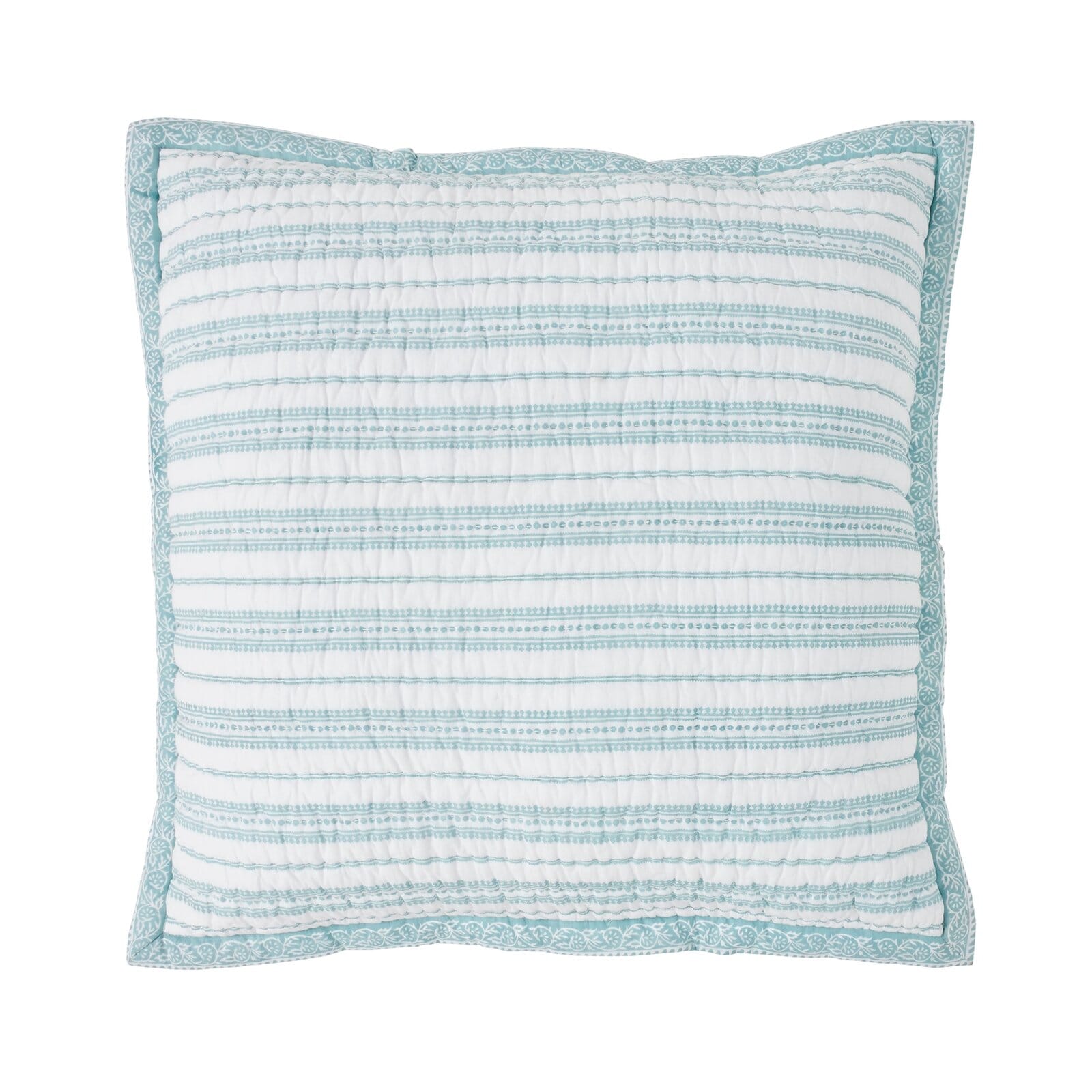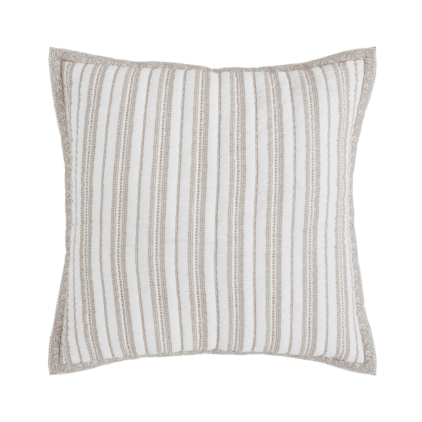 We spotted this gorgeous pattern from an extensive textile library. Obsessed with its beauty, we reimagined layering pieces for the bed, fine-tuning the pattern pairings till they were just right ? lively, versatile, and lots of fun to mix and match. The reversible designs showcase stripe pattern and let you change up your look in no time flat. Printed and quilted by hand, still lightweight enough for warm nights, cozy enough for chillier ones.