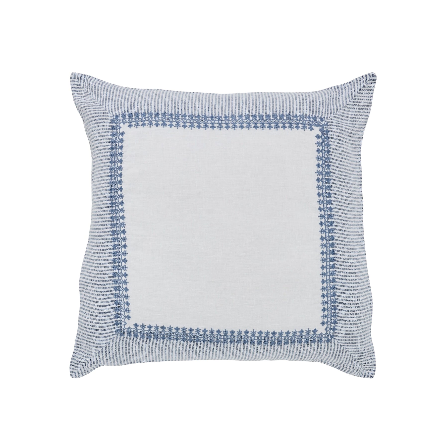 Our yarn-dyed linen stripe border adds a nice contrast to the textured embroidery