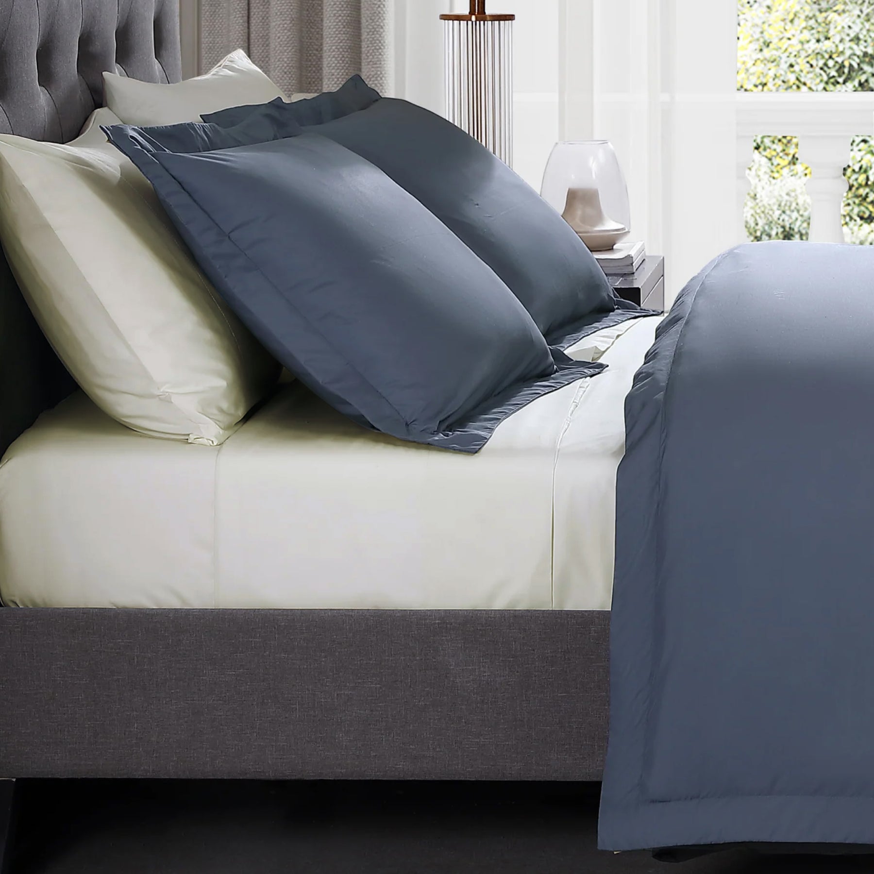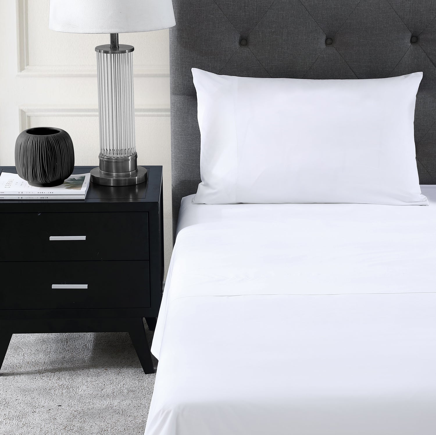 Exquisite single-needle stitch featured on pillowcases & flat sheet