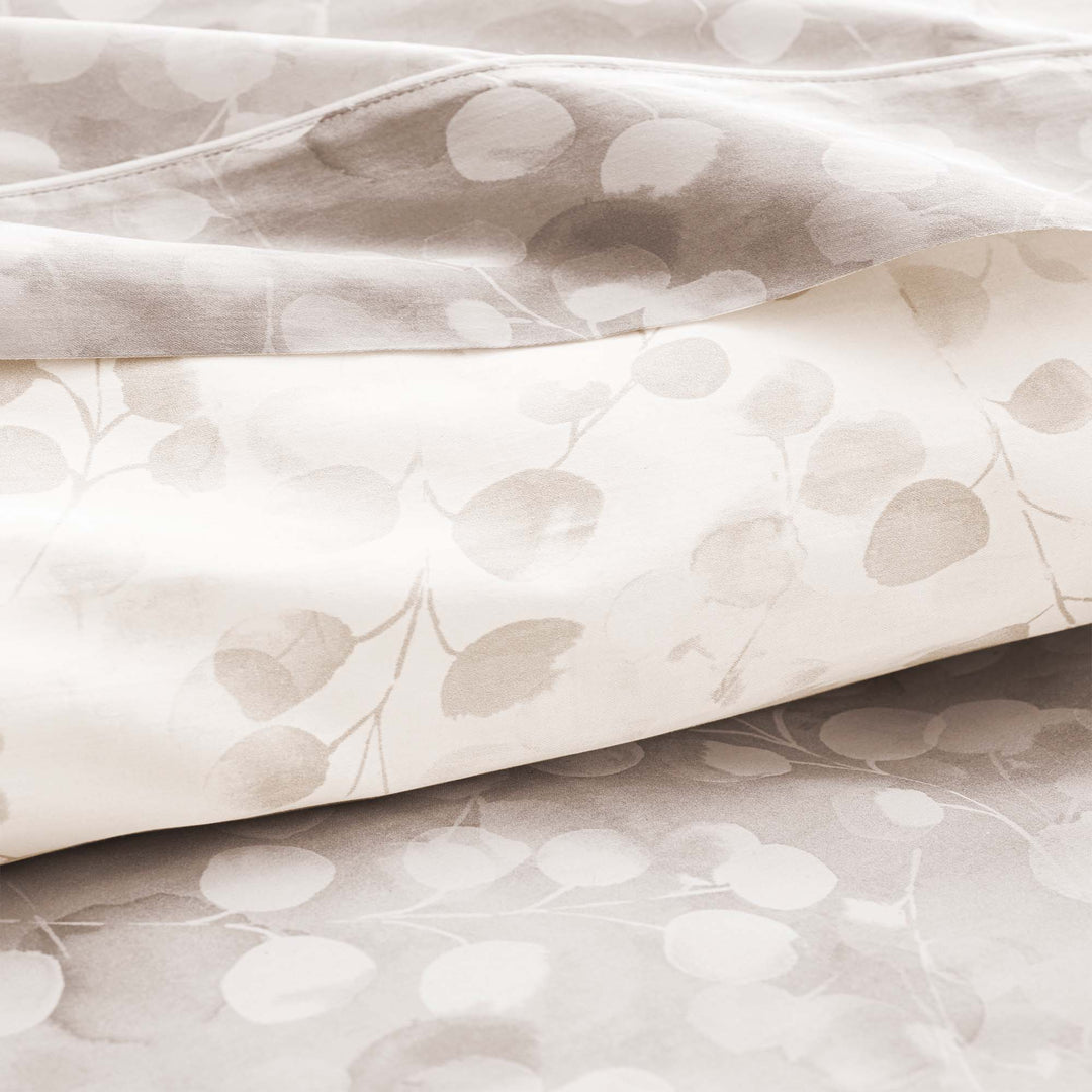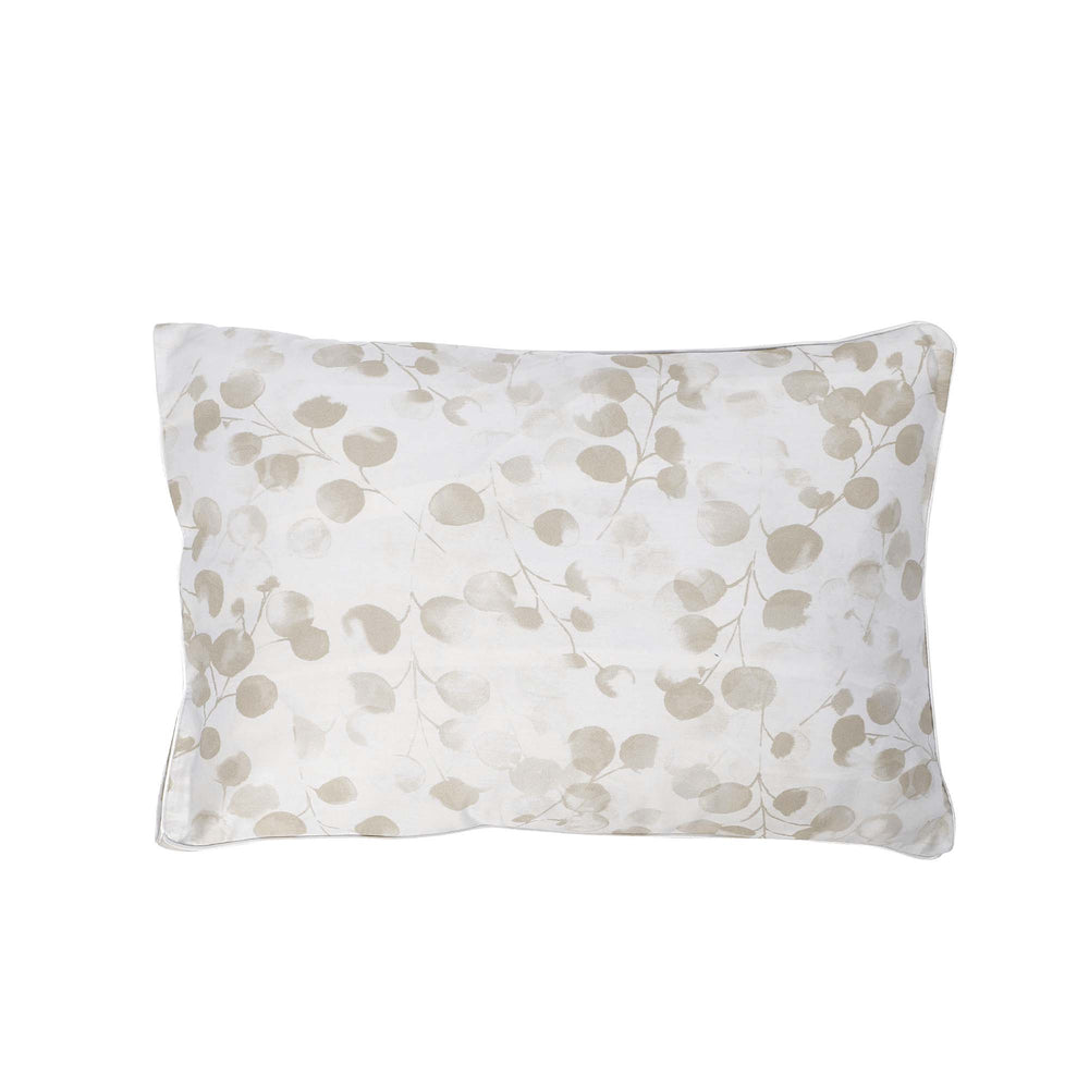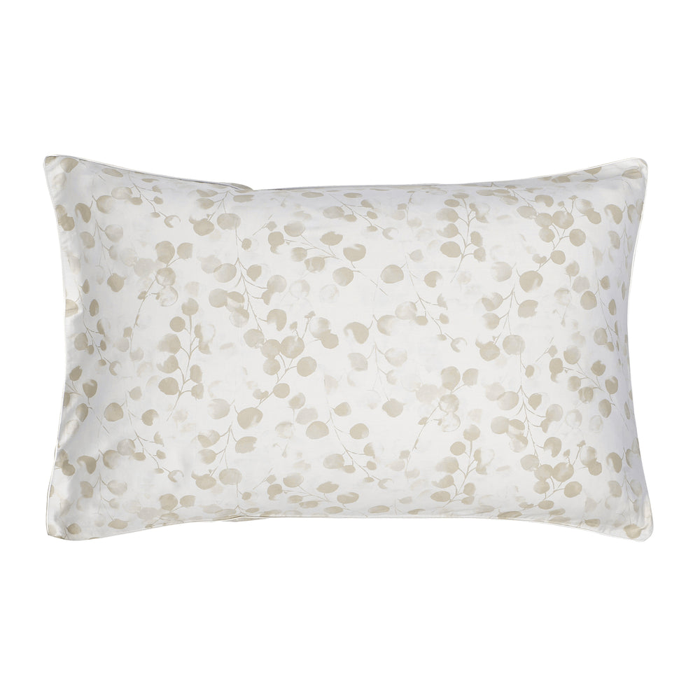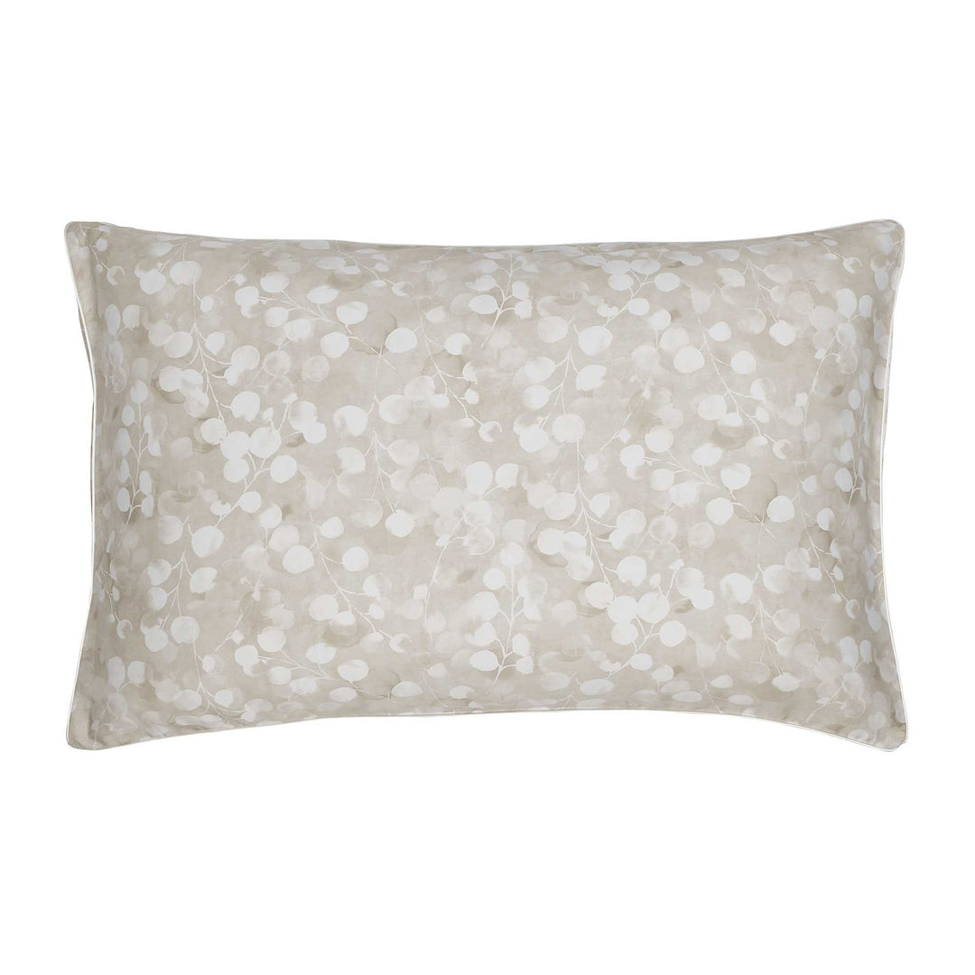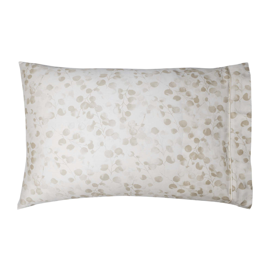 Rosée beige is a lush, romantic watercolour print of Honesty flower seed pods, done in beautiful shades of beige. The design uses two different prints, one has a beige ground design uses two different prints, one has a beige ground and the stylized contemporary print is done in white, the other has the seed pods in beige on a white ground. Together the look of flat sheet is sophisticated, very contemporary, and importantly - beautiful with smooth sateen construction. The flat sheets, pillowcases and shams are embellished with a fine piping finishing detail.