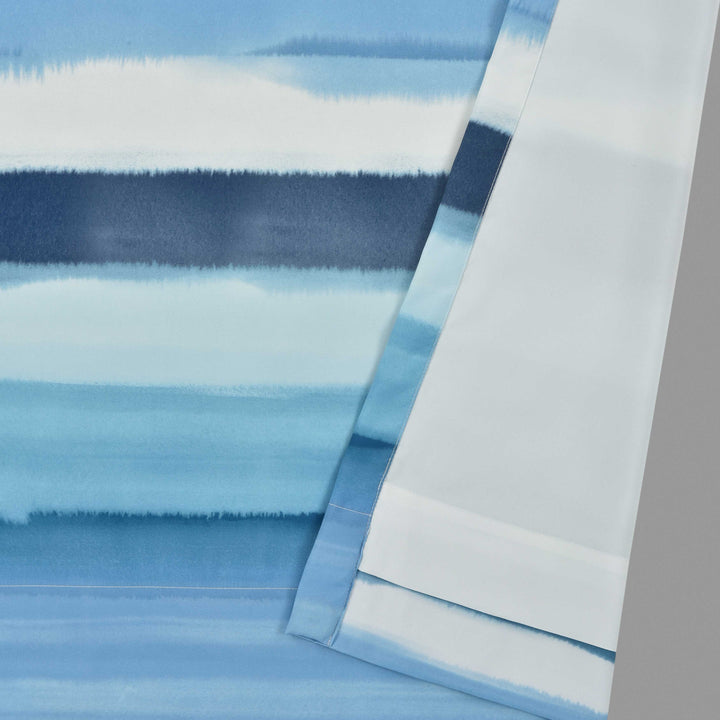 The balboa grommet window panel pair features an artistic watercolor horizontal stripe in shades of ocean blue, sky blue and white. A fresh breezy take on transitional fashion, these panels drape beautifully around your windowsill, and are an excellent addition to your home decor. Add the coordinating window valance and bedding collections to complete the look.