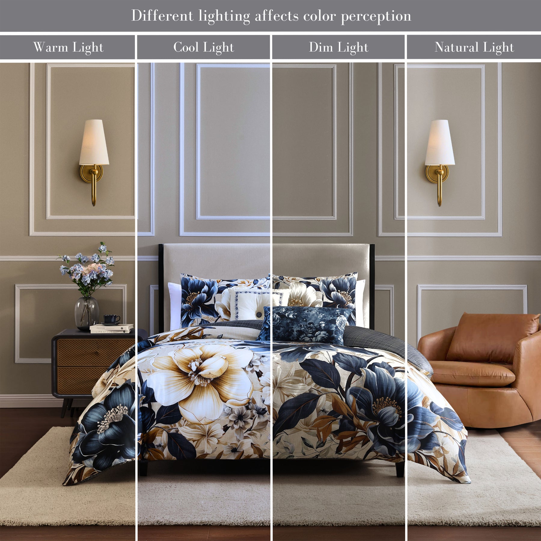 steel blue, soft beige and creamy ivory