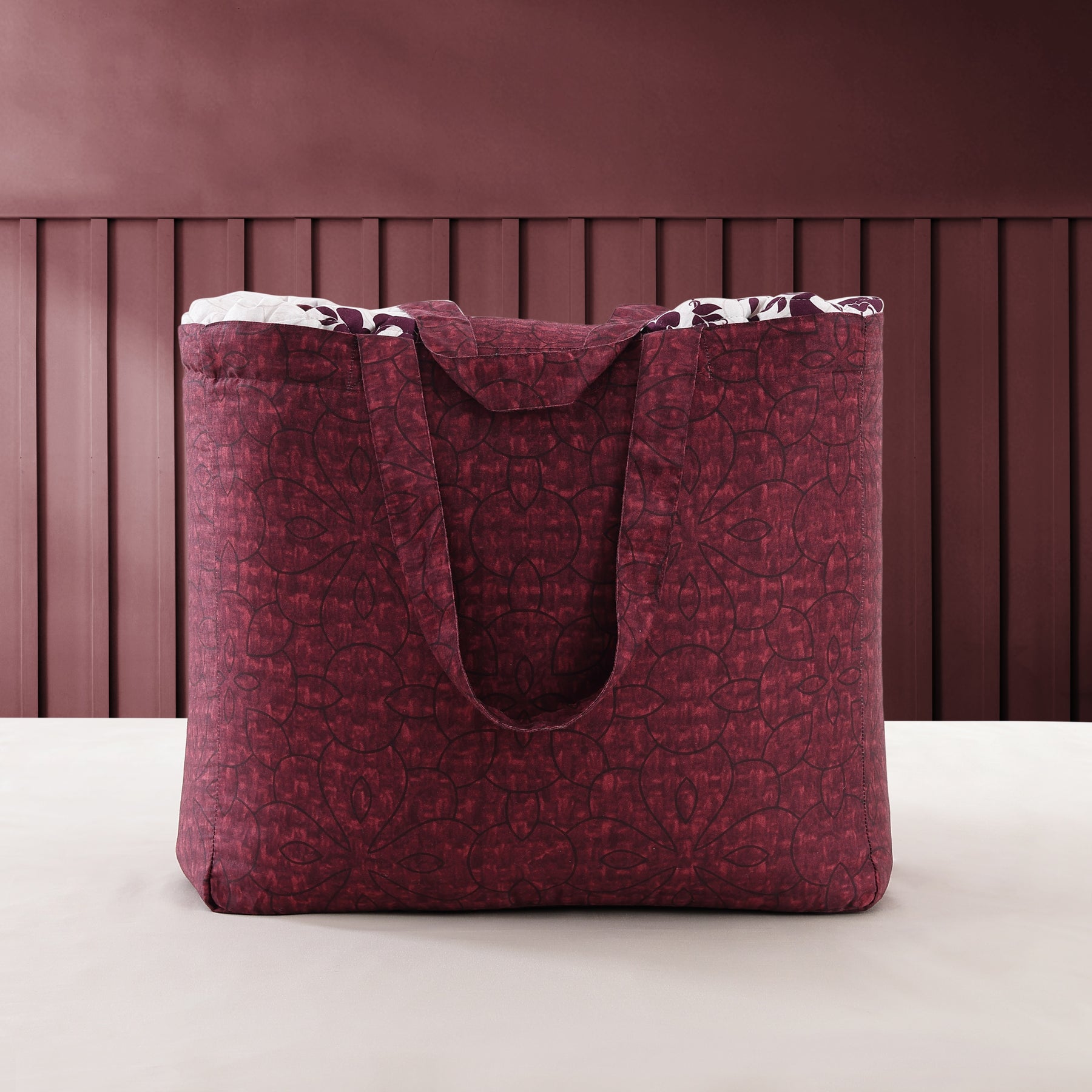 The Rosewood Harmony 3 Piece Reversible Coverlet Set has a pleasant grouping of leafy medallions in earthy shades of burgundies and blushes. The reverse has a tonal burgundy pattern, perfectly coordinating with the front and offering a second look for your bedroom. This 100% cotton sateen 3 piece set includes 2 printed shams, and a 100 gsm filled quilted coverlet. As a bonus, the set is packaged in a reusable self-fabric tote.
