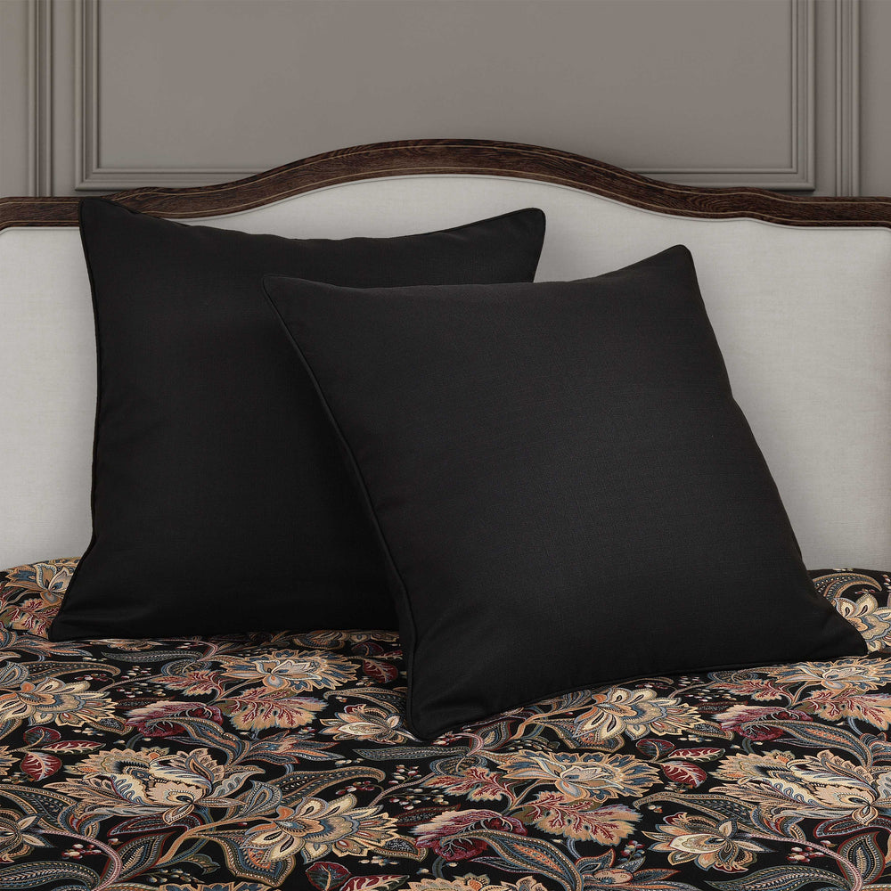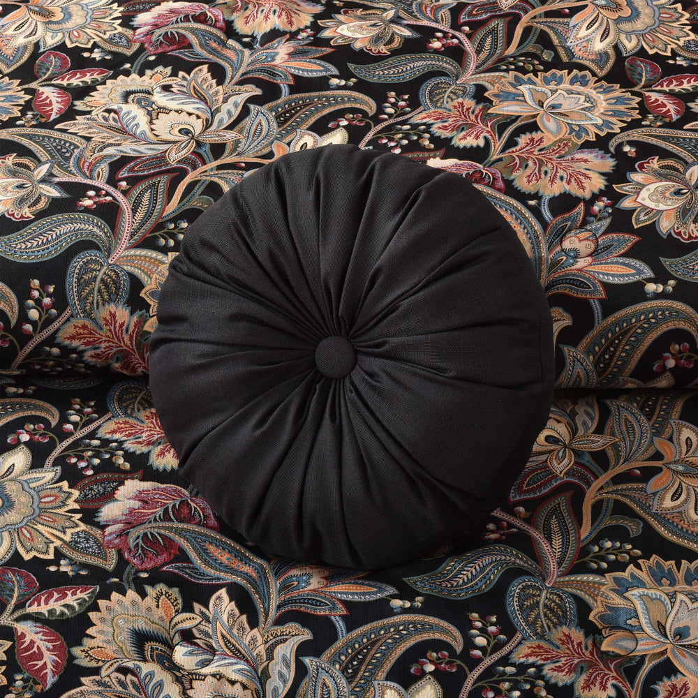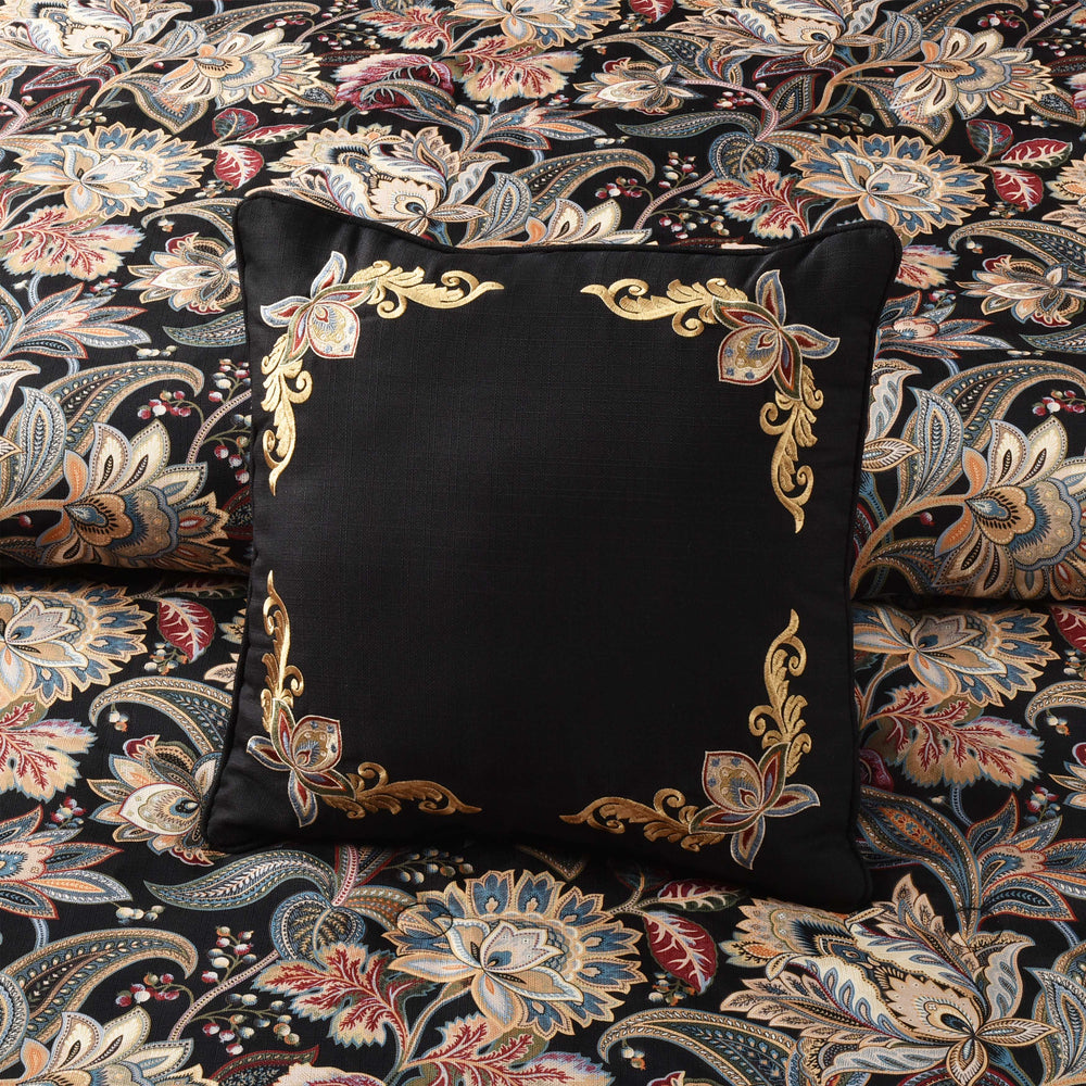 Transform your bedroom into a luxurious retreat with the calabria comforter set. This elegant set features a sophisticated jacobean floral pattern in rich, warm tones against a striking black backdrop, adding an air of timeless beauty to your space. The intricate design is both classic and modern, making it perfect for a variety of décor styles. The set includes matching pillow shams that pulls the beauty all together. Pair this bedding collection with the calabria throw pillows, euro shams, and window treatments for a complete look.