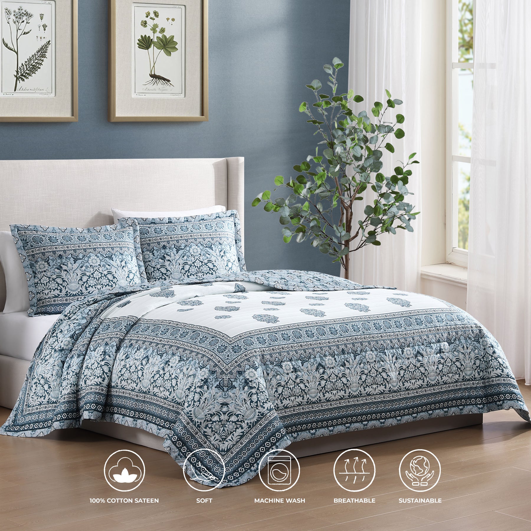 Set Includes: 1 Coverlet | 2 Shams | 1 Sustainable Fabric Bonus Bag