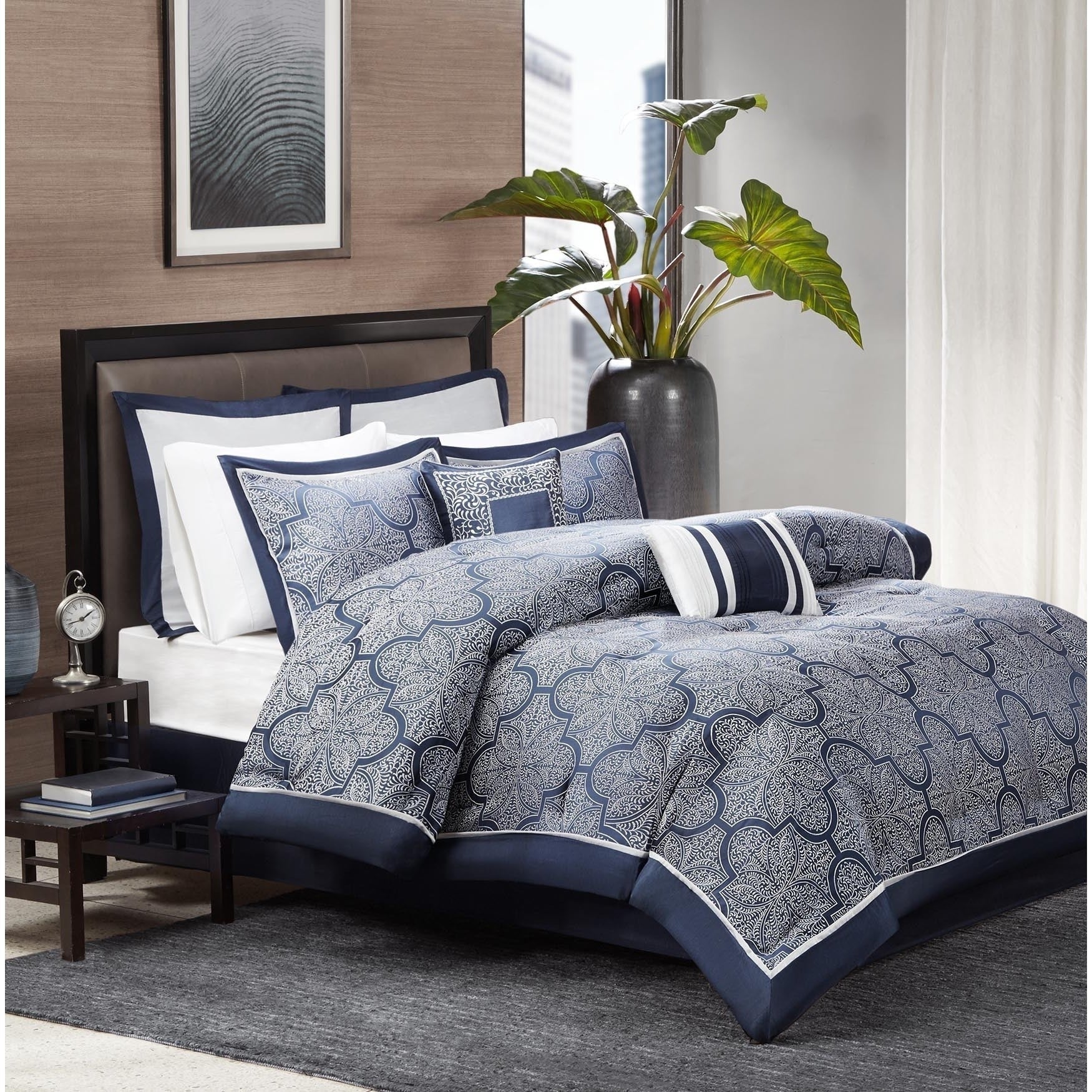 Set Includes: 1 Comforter | 2 Pillow Shams | 1 bedskirt | 2 Euro Shams | 1 Square Pillow | 1 Oblong Pillow