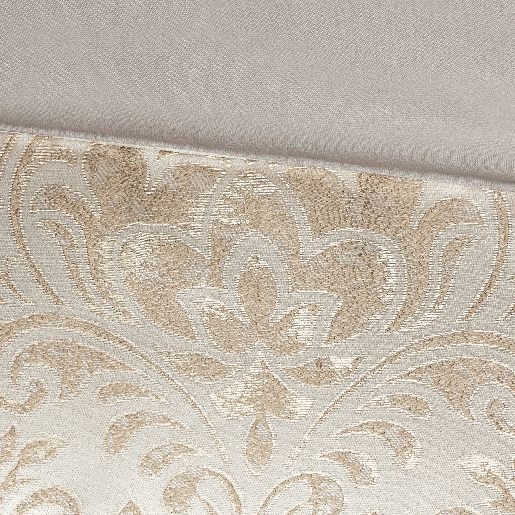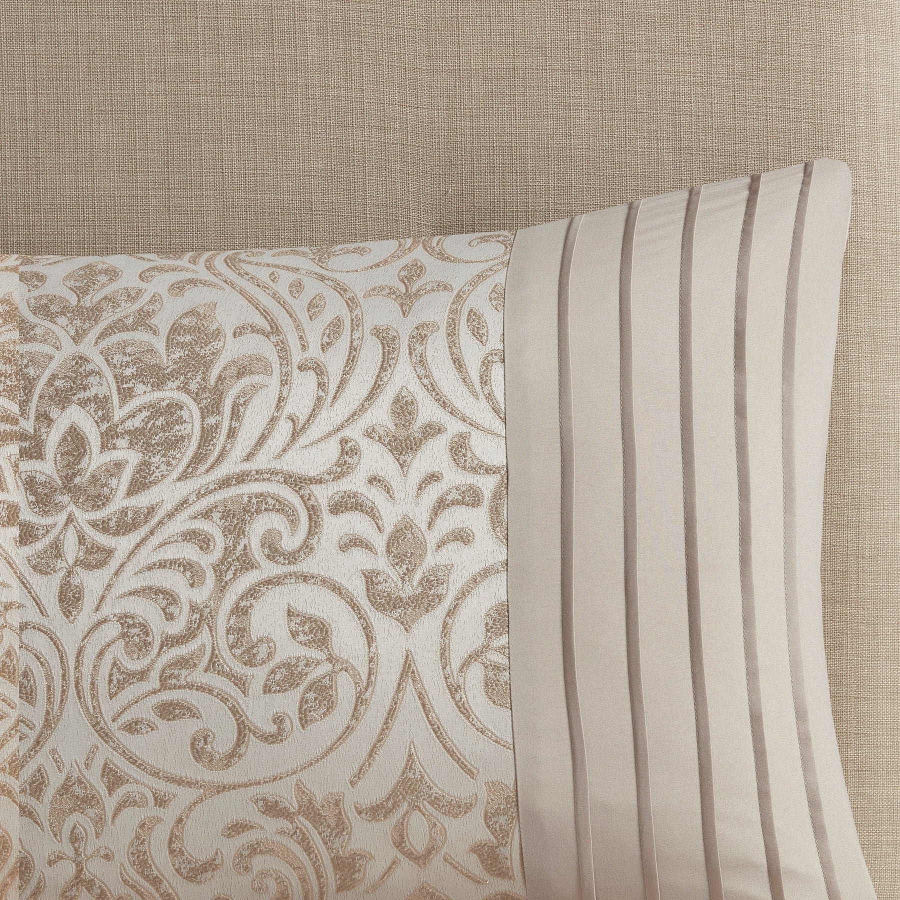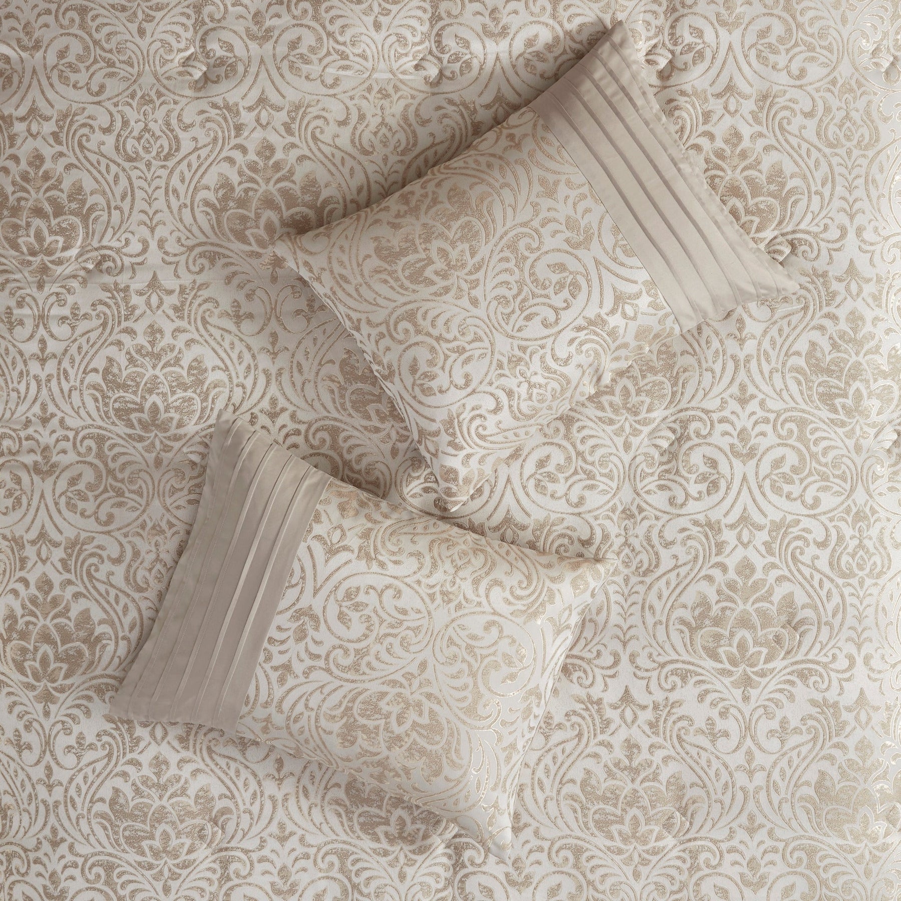 jacquard comforter and shams feature gold metallic thread woven into the all-over damask pattern, for a sophisticated look