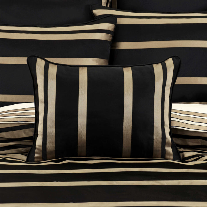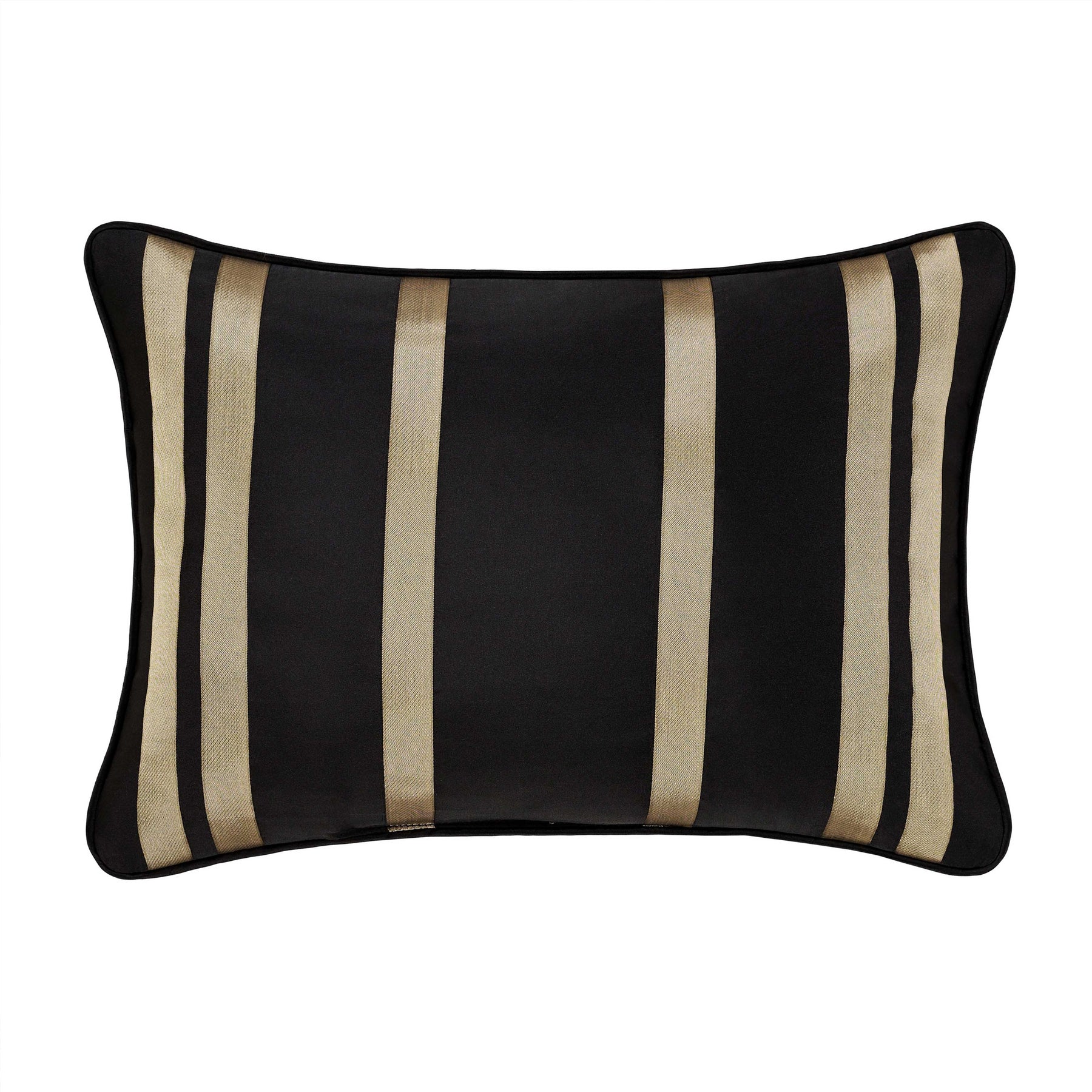 The calvari boudoir decorative throw pillow offers a modern lustrous look with its geometric polished black and gold stripes on a plush satin fabric. Further details include an all-around satin piping for a tailored finish. Pair this pillow with the calvari bedding set by j. Queen new york for a clean contemporary look.