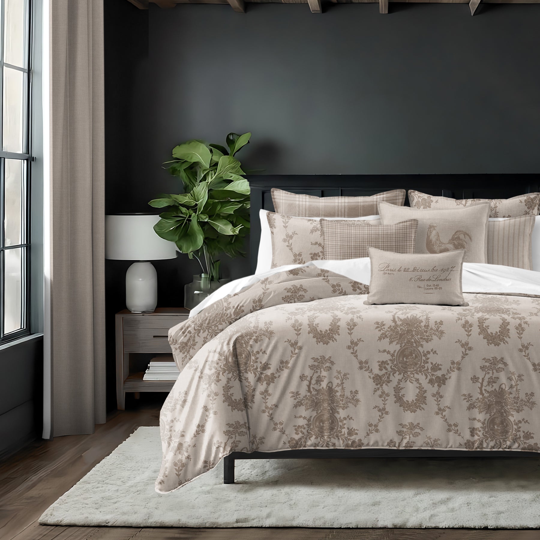 Complete Designer Set Includes: 1 Comforter, 2 Pillow Shams, 2 Euro Shams, 3 Decorative Pillows