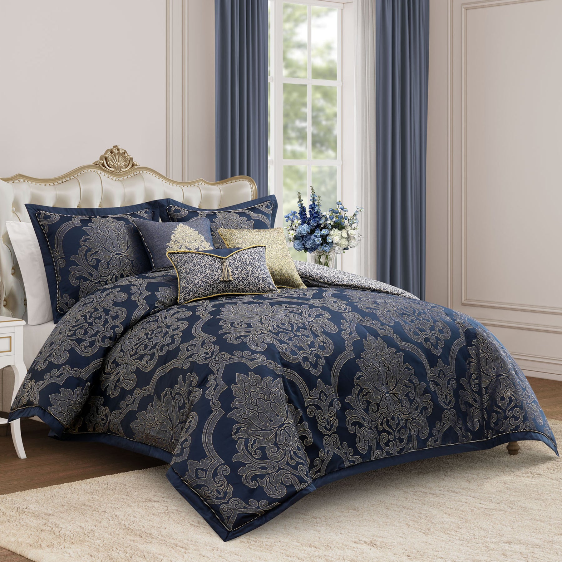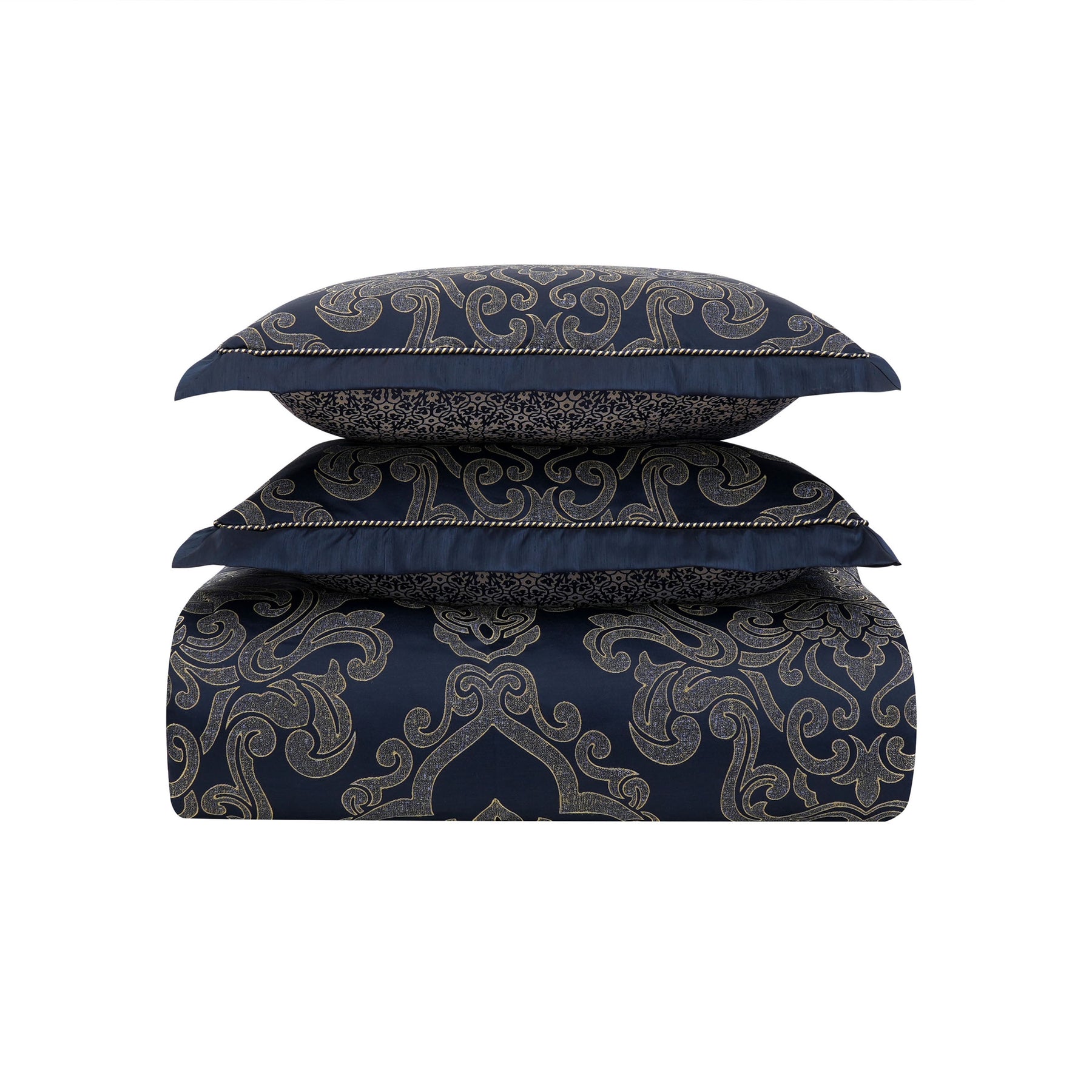 Vaughn Navy/Gold 3 Piece Comforter Set