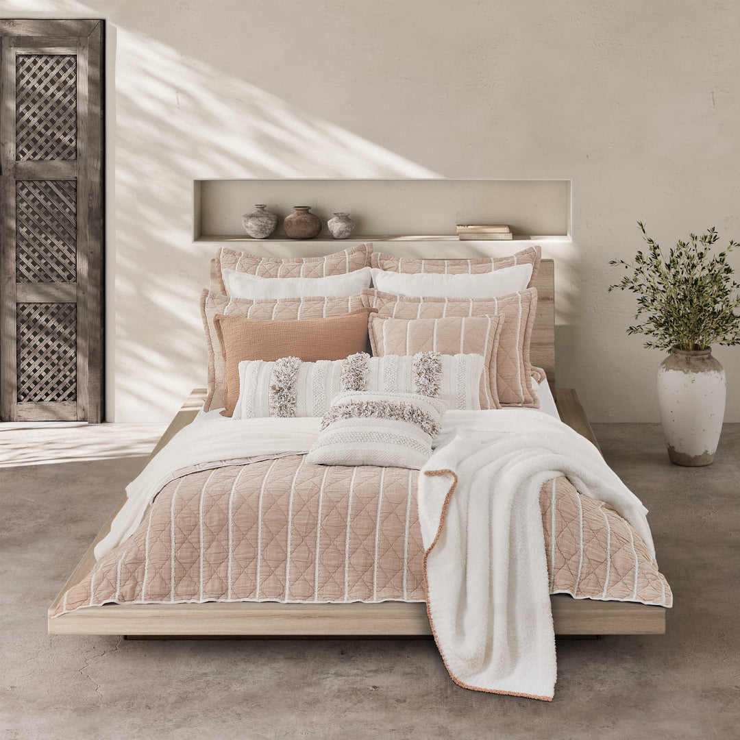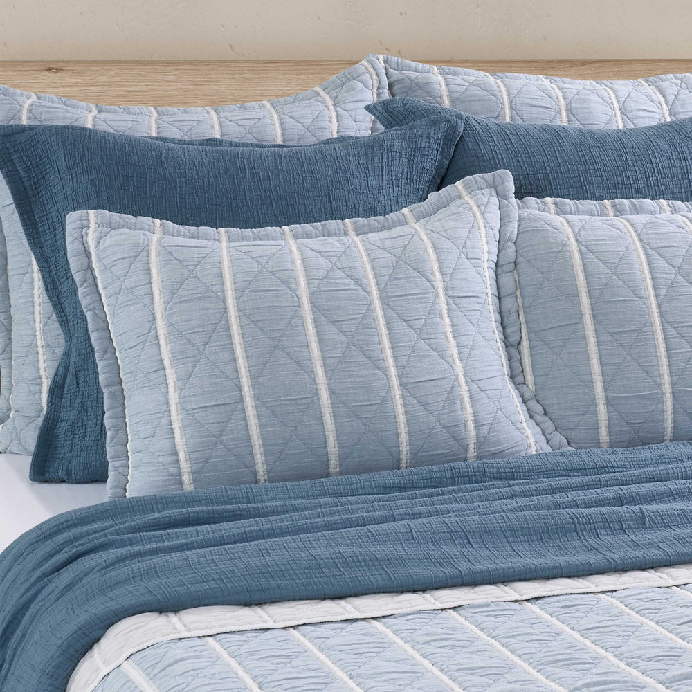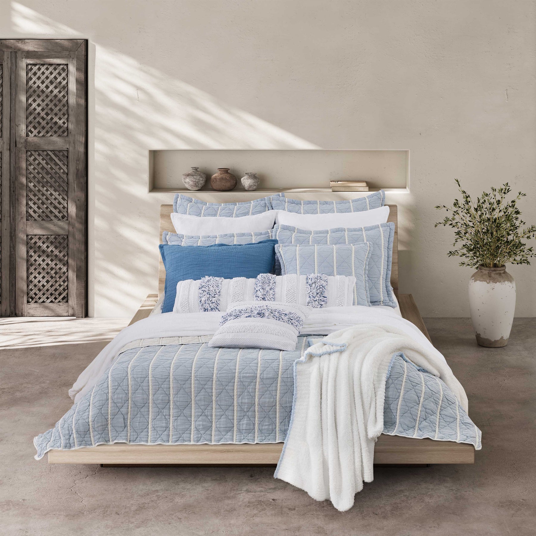 Meticulously tailored in portugal, the playa coverlet blends traditional artistry with modern comfort, resulting in a bedding piece that's both aesthetically pleasing and indulgently cozy. Featuring a uniquely lofty matelassé design that takes cozy comfort to another level, this coverlet is made of 100% cotton and is produced using an eco-friendly process that uses 70% less water consumption. Available in an array of colors that will transform your space into a tranquil oasis. Pair this quilt with the south seas duvet collection by white sand for the ultimate lived-in look.