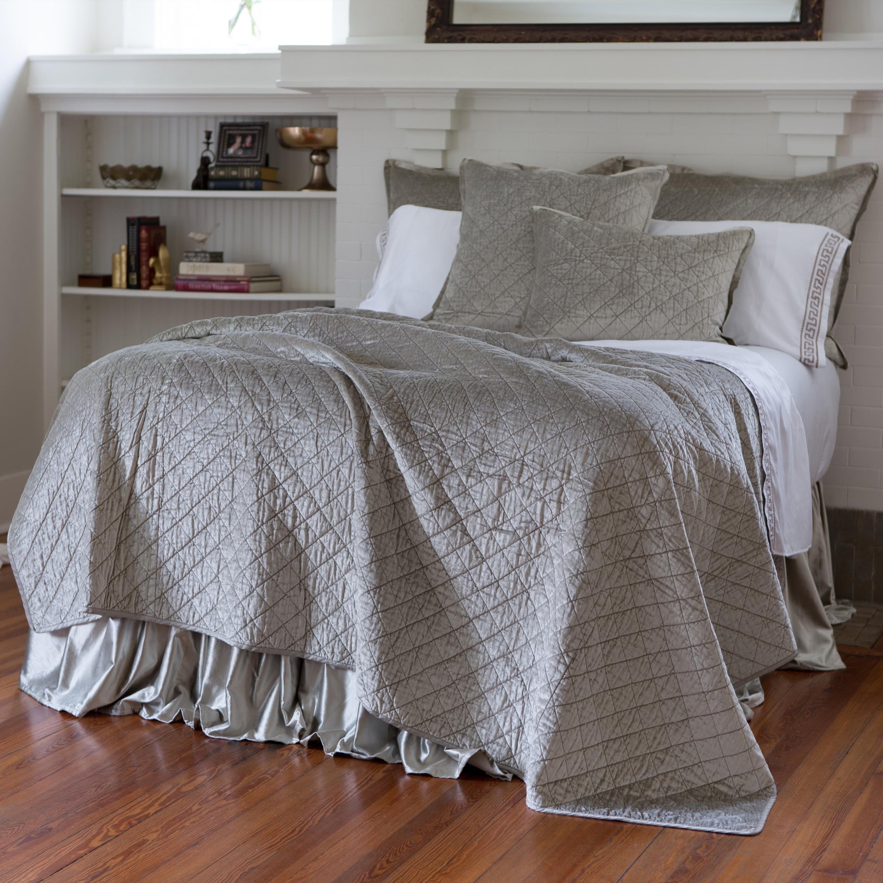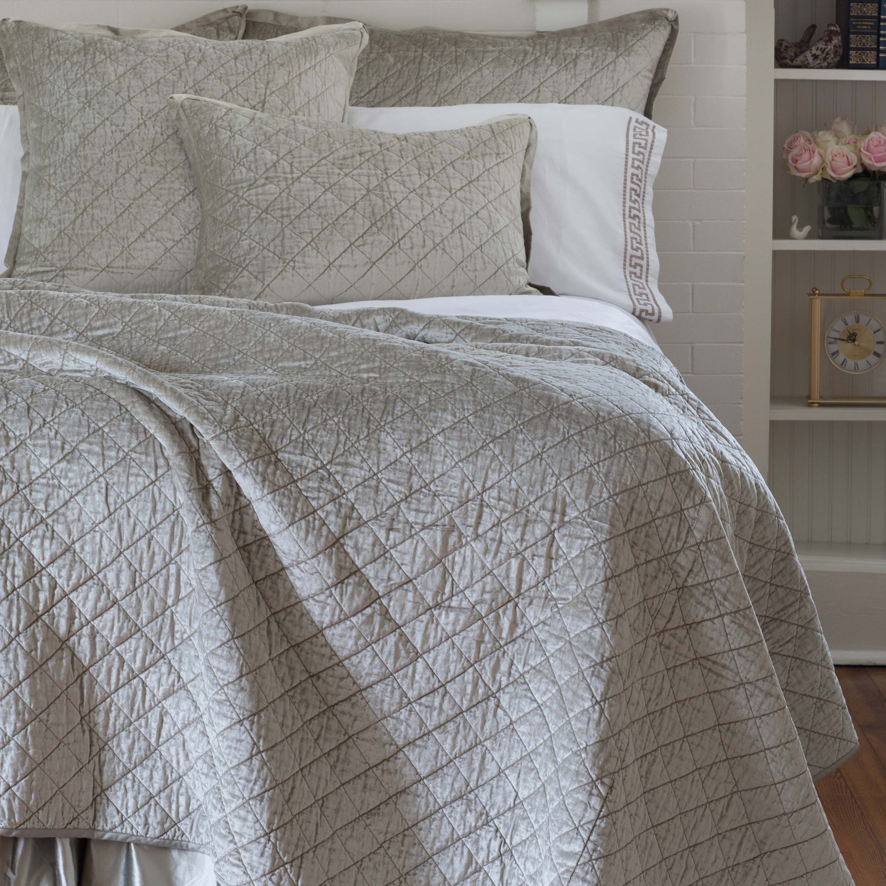 Chloe Ice Silver Velvet Diamond Quilted Coverlet
