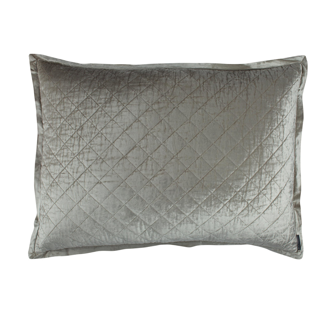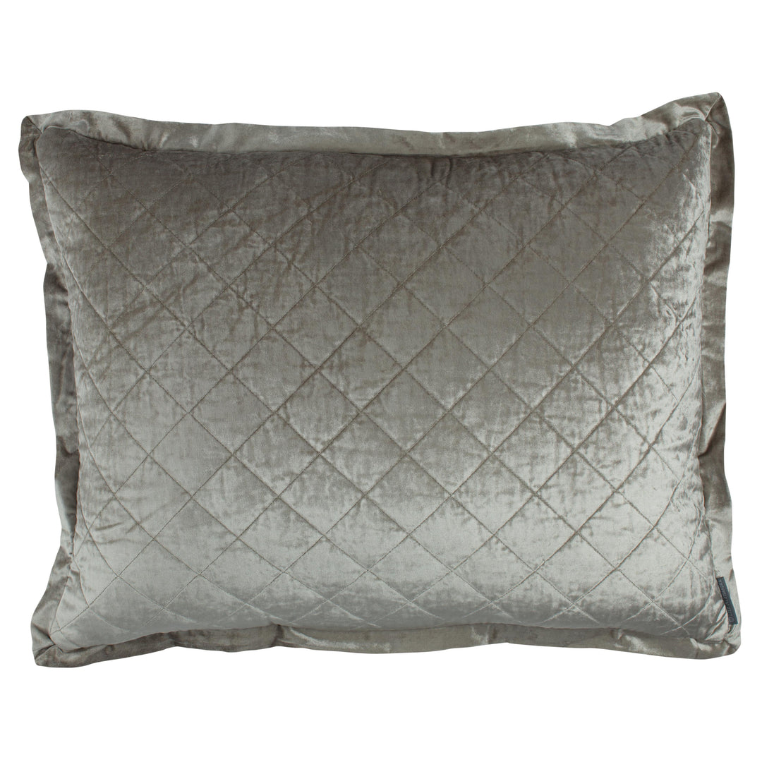 The Chloe Diamond Quilted Coverlet is made of Ice Silver Velvet and is Reversible to Silk & Sensibility. It's Pre-Washed and Machine Washable. Imported.