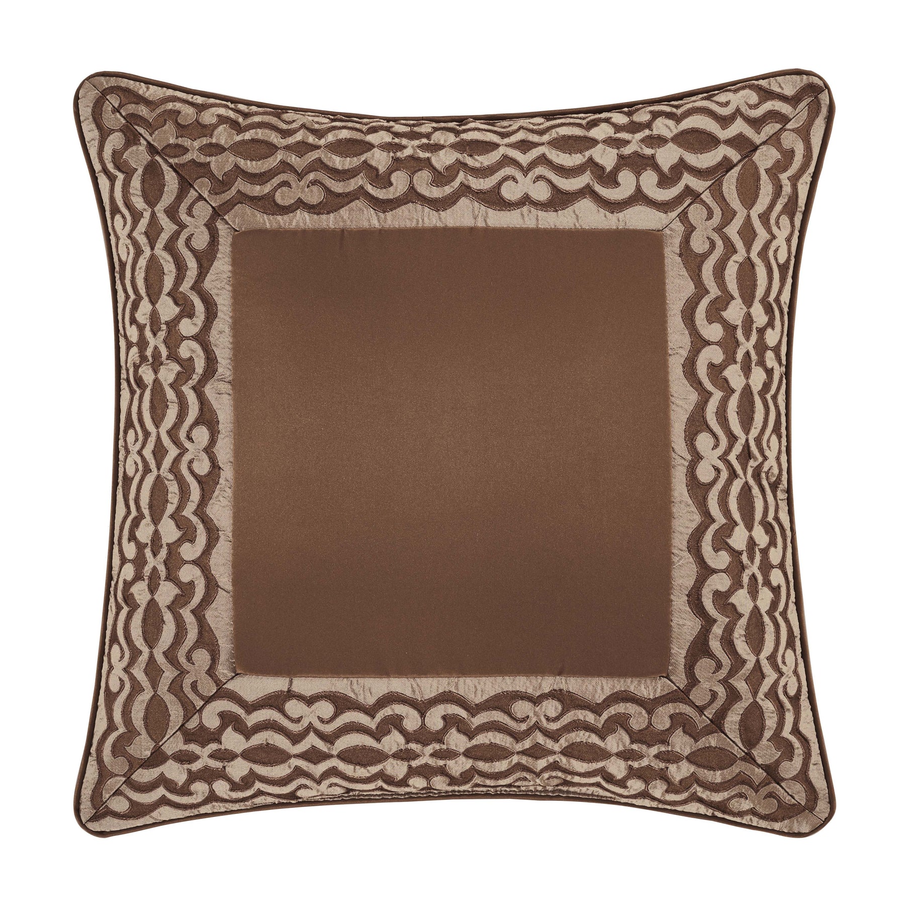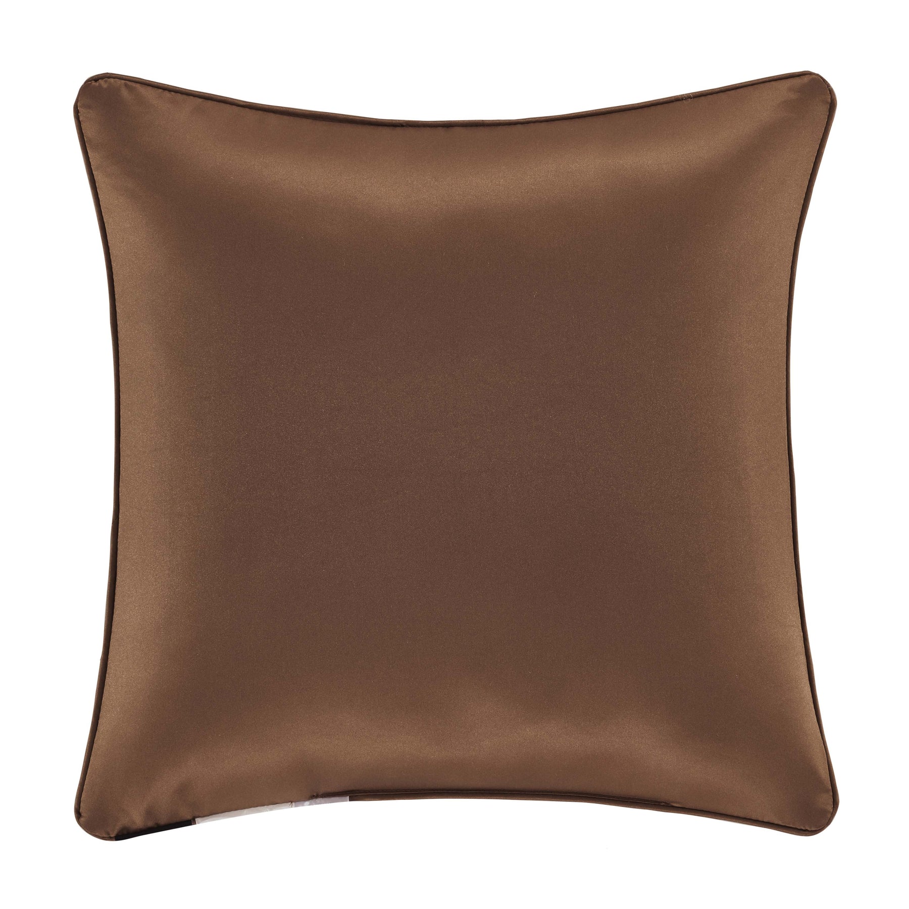 A generous 20‚¬� square throw pillow is a perfect decorating accessory not only to complete the bedding ensemble but as an elegant accent in other areas of the home. Framed and mitered with a copper and beige woven damask border on the face, a plush tonal satin on the reverse and trimmed on all four sides with satin piping. Pair this pillow with the surano bedding set by J. Queen new york for an updated luxe-traditional look.