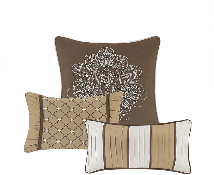 Set Includes: 1 Comforter | 2 Pillow Shams | 1 bedskirt | 2 Square Pillows | 1 Oblong Pillow