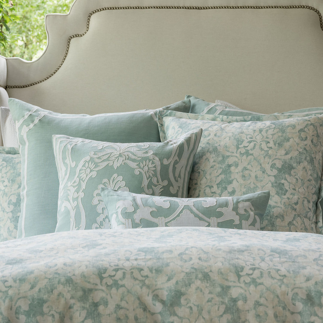 In the fall of 2008, Lili Alessandra was born as the brand that represents an always evolving vision. Lili Alessandra strikes a unique balance between classic design and modern, luxurious bedding. Re-imagine your bedroom with luxury and fashion. The Milan Duvet is made with Spa faded damask venetian linen. A duvet insert is not included. Machine Washable.