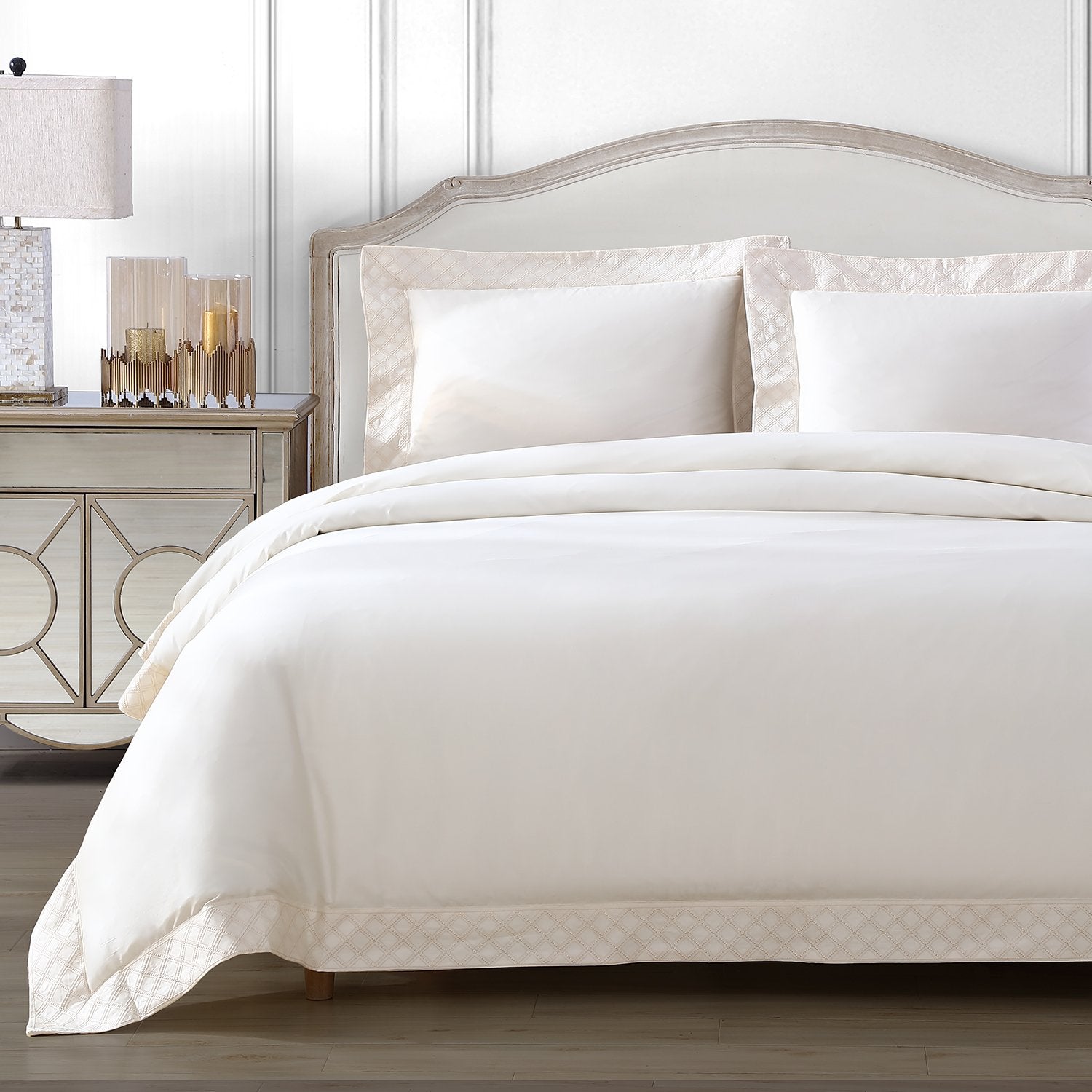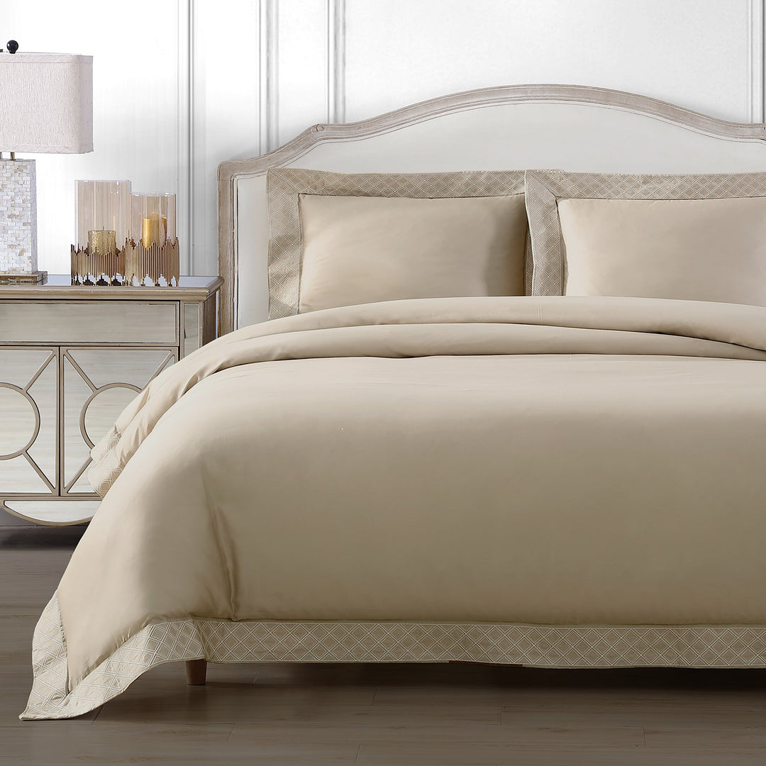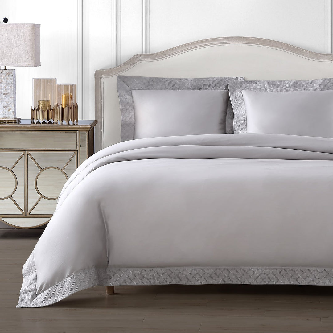 Contemporary Accent Diamond Embroidery on Shams and Duvet Cover