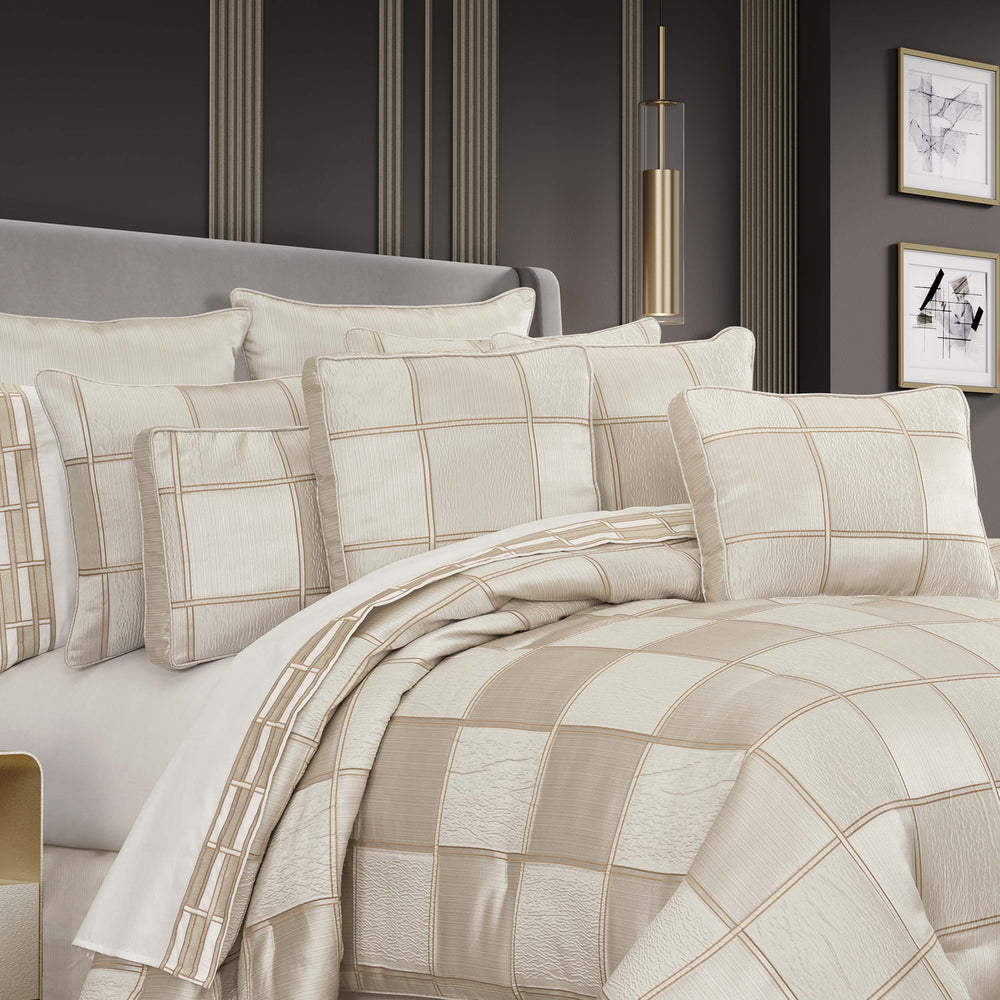 Walker Check Reverse to Stripe Natural/Ivory 8 Piece Comforter Set