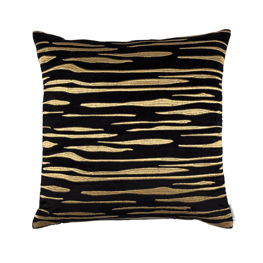 Lili Alessandra Black Matte Velvet Gold Embroidery Square Pillow