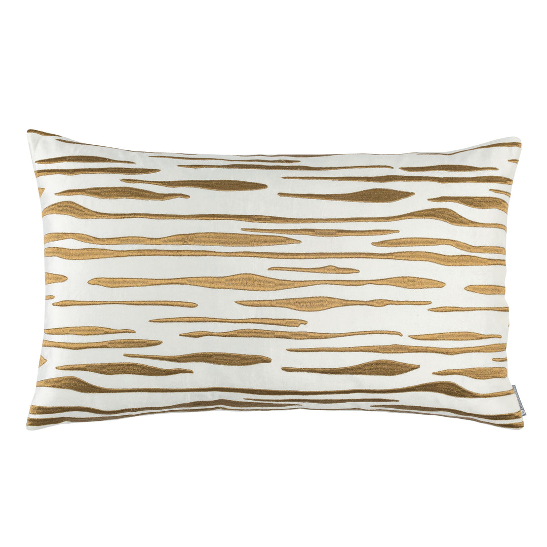 Lili Alessandra Ivory Matte Velvet Gold Embroidery Rectangle Pillow