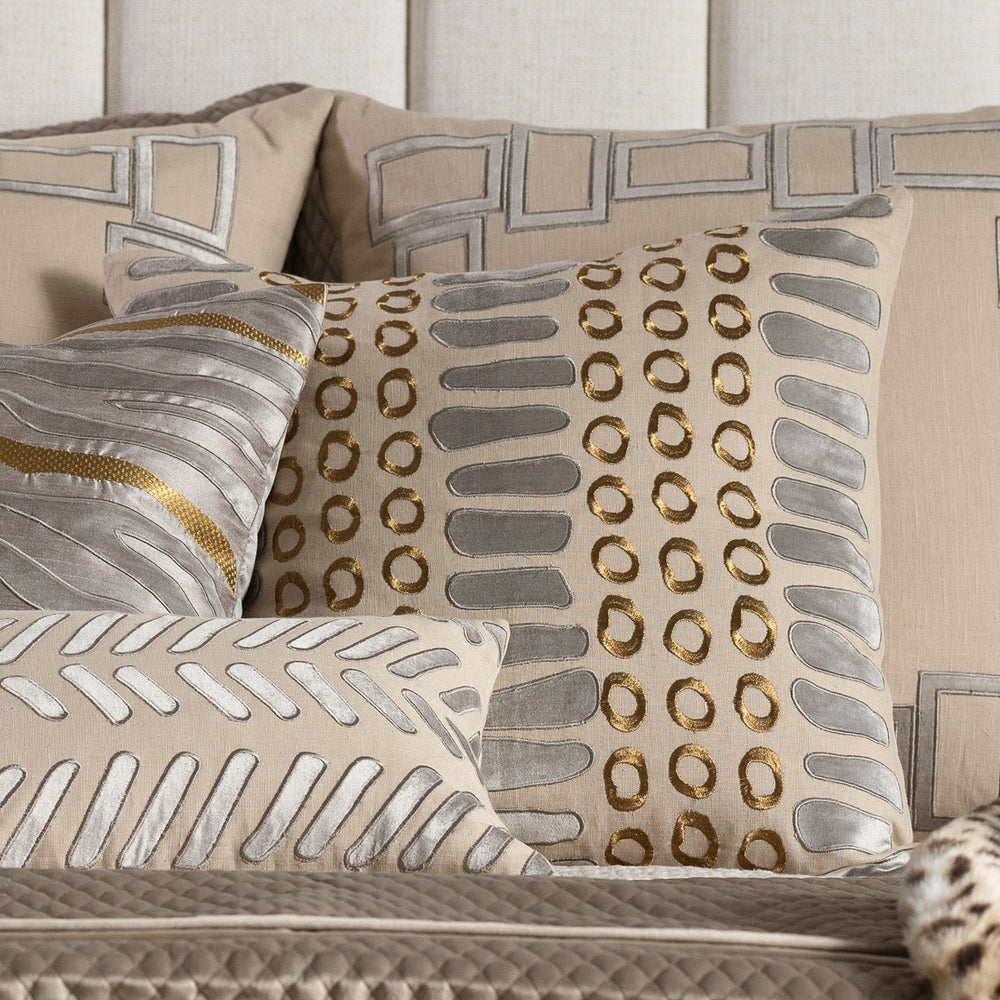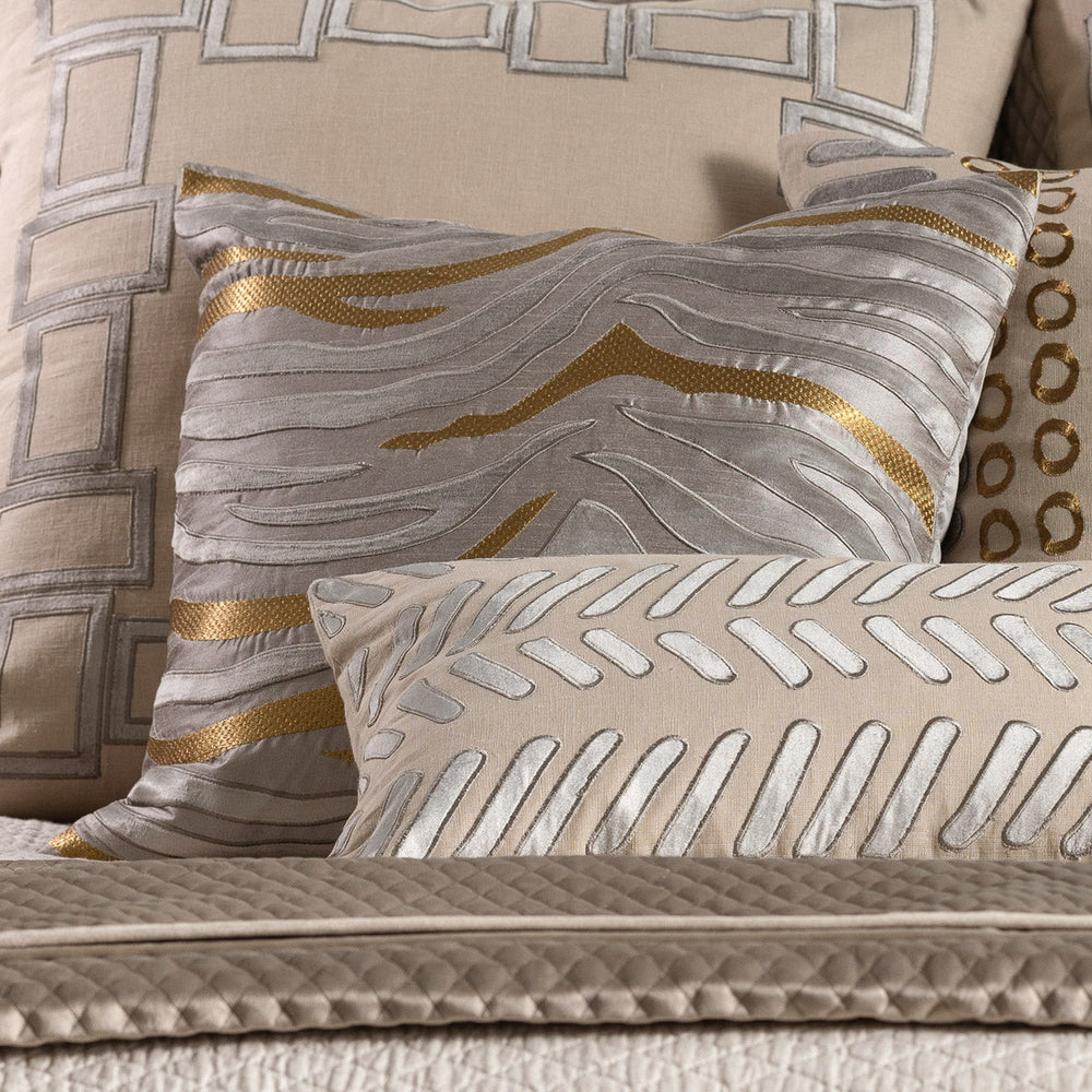 Jolie Silver Velvet / Gold Print Decorative Throw Pillow