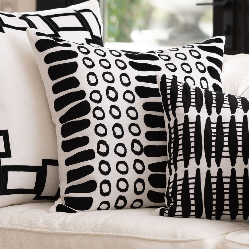 Ivy White/Black Square Decorative Throw Pillow 22" x 22"